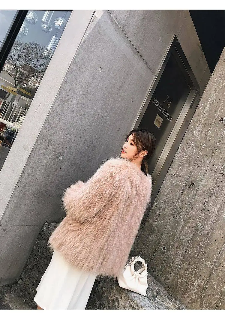 Женская Шуба из искусственного меха Bella Philosophy, теплая однотонная шуба из лисьего меха с длинным рукавом, для офиса, для осени и зимы, 2019
