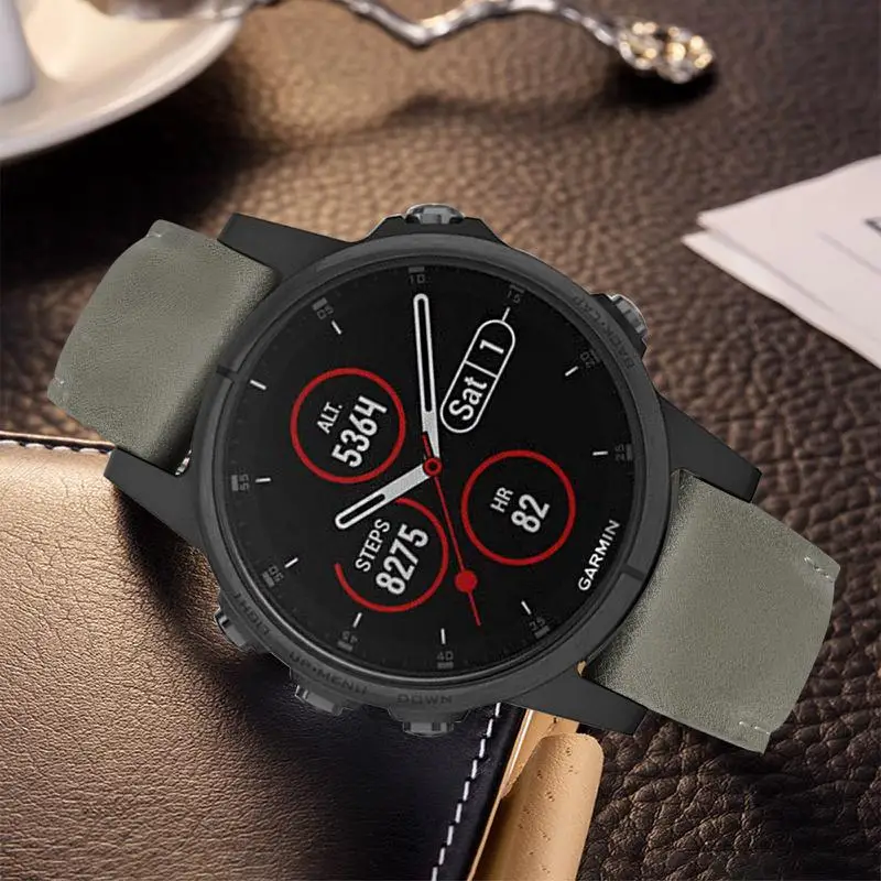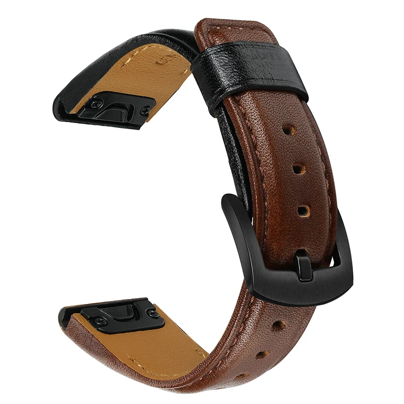 Ремешок кожаный для наручных часов Garmin Fenix 7 6 Pro 5 Plus Forerunner 945спуск G1 MARQ Instinct 2