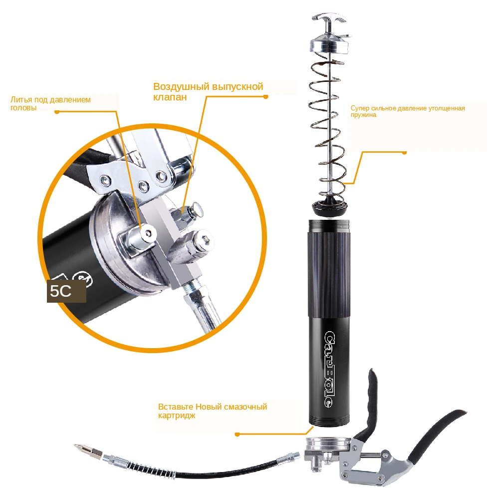 Сверхмощный пистолет 6000 фунтовкв. дюйм ручной смазочный пистолет с помощью шланга и жесткой трубы