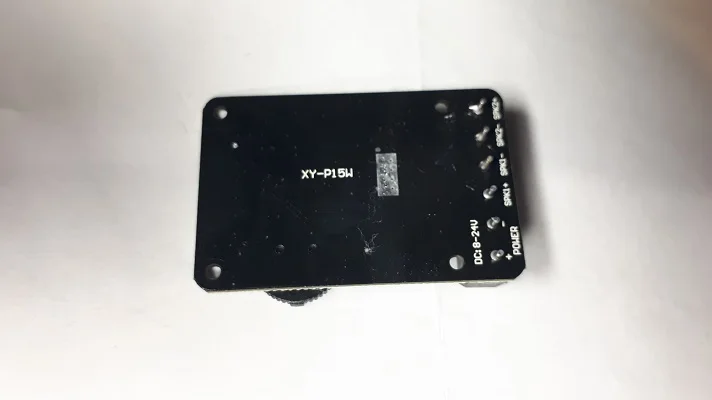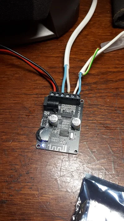 усилитель дошел, все работает, единственное , вроде перепутаны маркировки плюс и минус на одном из выводов на динамики, но это не критично. По мощности норм хватает на блютуз колонку в огород из 16-ти сантиметровых динамиков)
