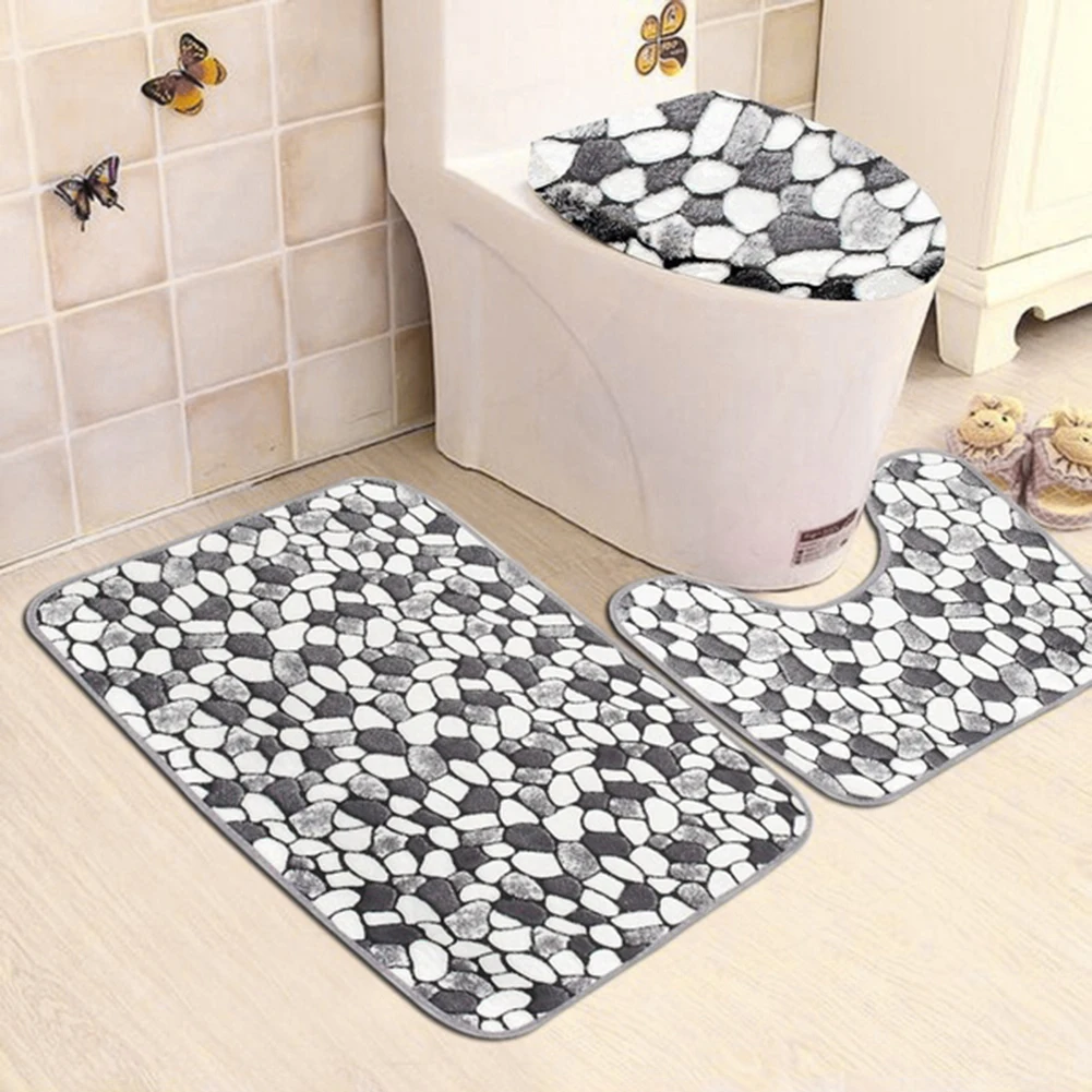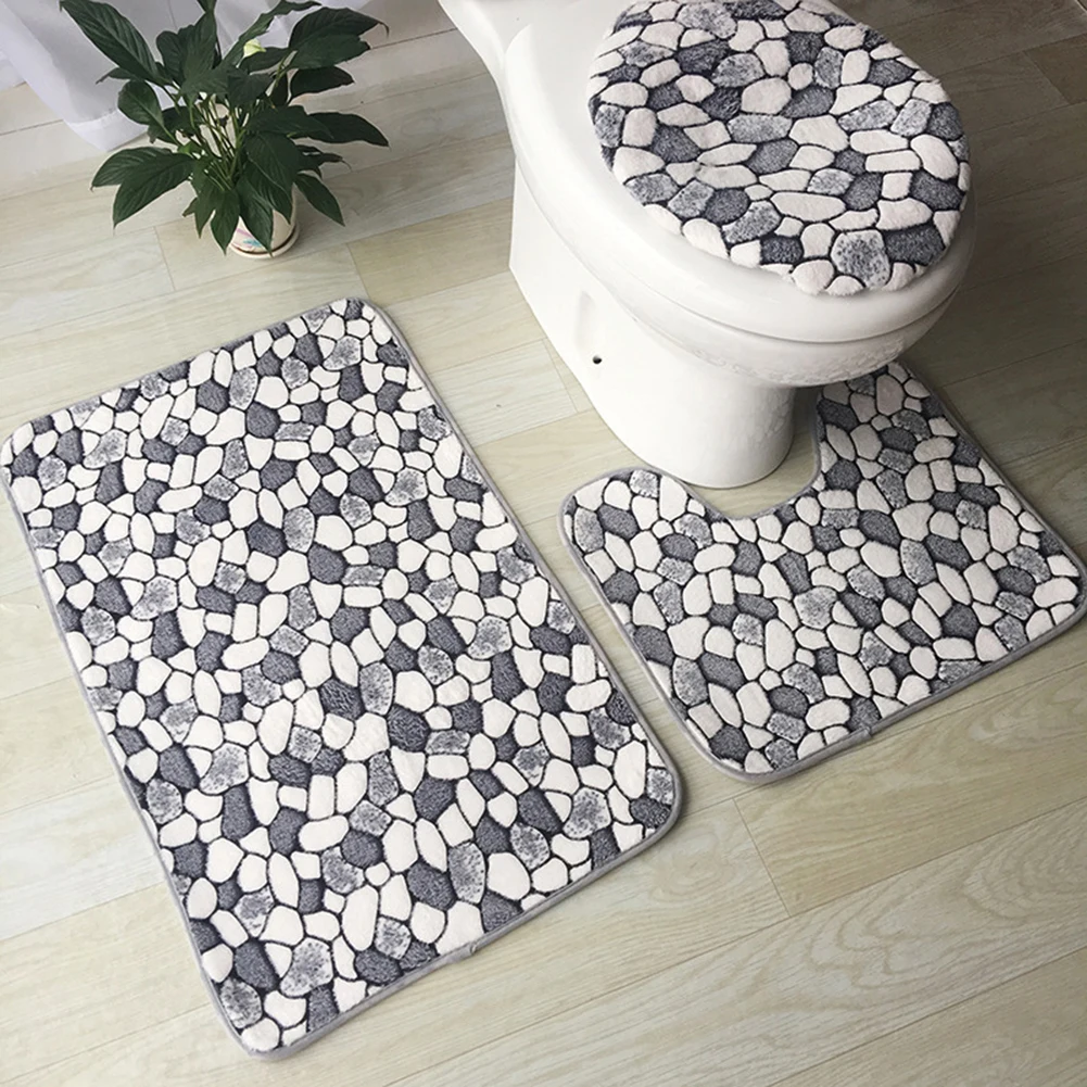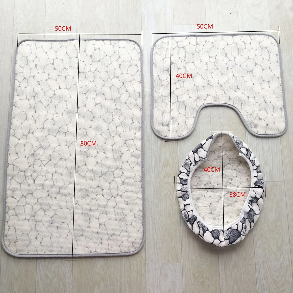 3 шт. нескользящий коврик для ванной комнаты, коврик для унитаза, домашний декор Характеристики: Изготовлен из высококачественного материала, очень мягкий и удобный. Легко впитывает воду и пыль, хорошая устойчивость к скольжению. Легко чистить, можно мыть непосредственно стиральной машиной или руками, не линять и не выцветать. Очень мягкая ткань высокой плотности, удобная, Экологичная, хорошая вентиляция. Наименование товара: ковер Материал: полиэстер Особенности: мягкий, нескользящий, домашний декор, дизайн из булыжника Размер квадратного ковра: 50 см x 80 см/19,69 "x 31,5" (прибл.) U-образный размер ковра: 50 см x 40 см/19,69 "x 15,75" (прибл.) Размер крышки унитаза: 40 см x 38 см/15,75 "x 14,96" (прибл.) Примечания: Благодаря светильник и экрана Цвет Товара может быть s светильник ly отличается из-за характеристик монитора компьютера. Возможны незначительные отклонения в размерах из-за различных измерений вручную. Посылка включает в себя: 2 x ковер 1 x чехол для унитаза