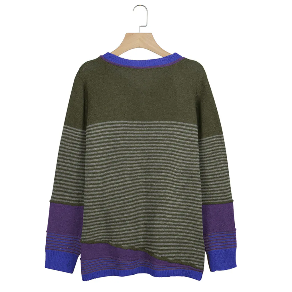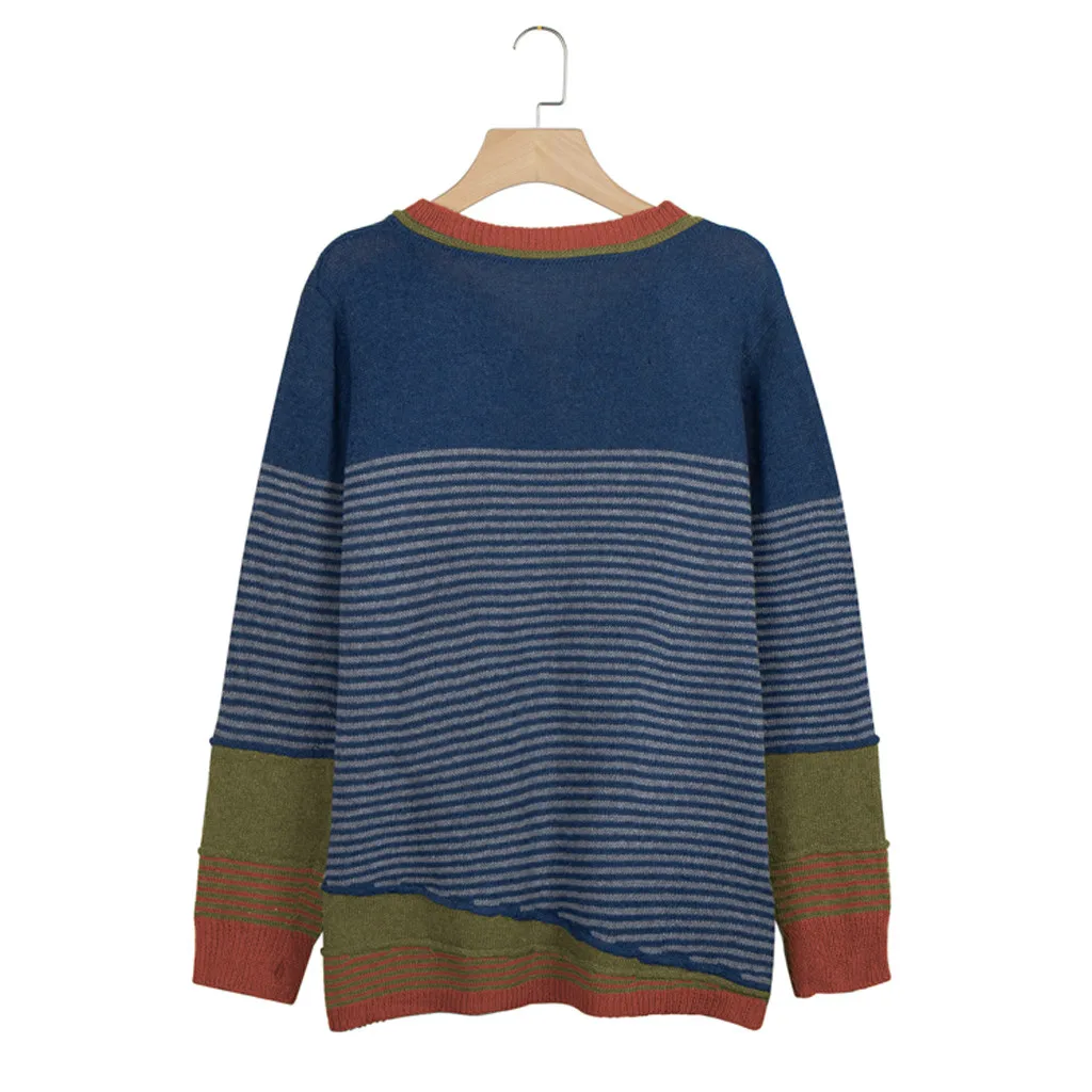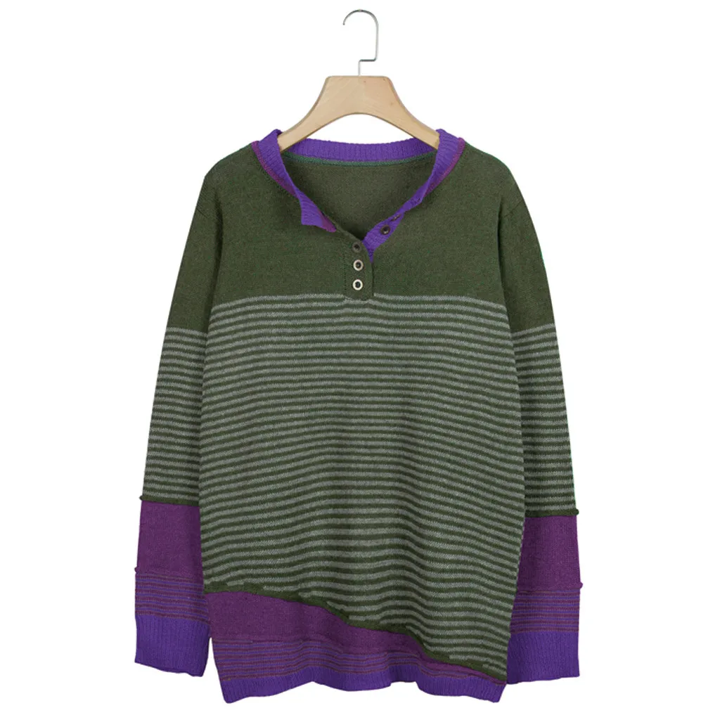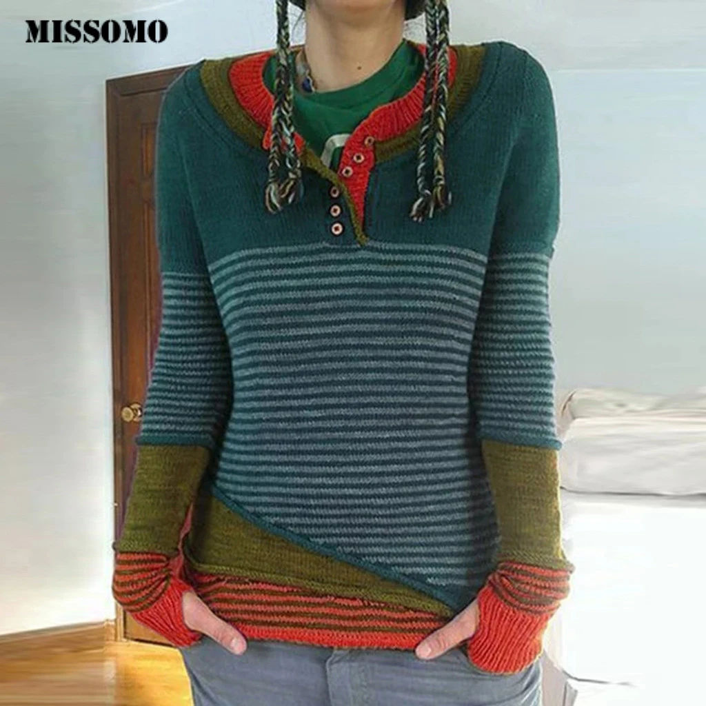 Женский свитер MISSOMO размера плюс, винтажный Повседневный полосатый лоскутный свитер с v-образным вырезом, вязаный свитер большого размера, пуловер, топы для женщин