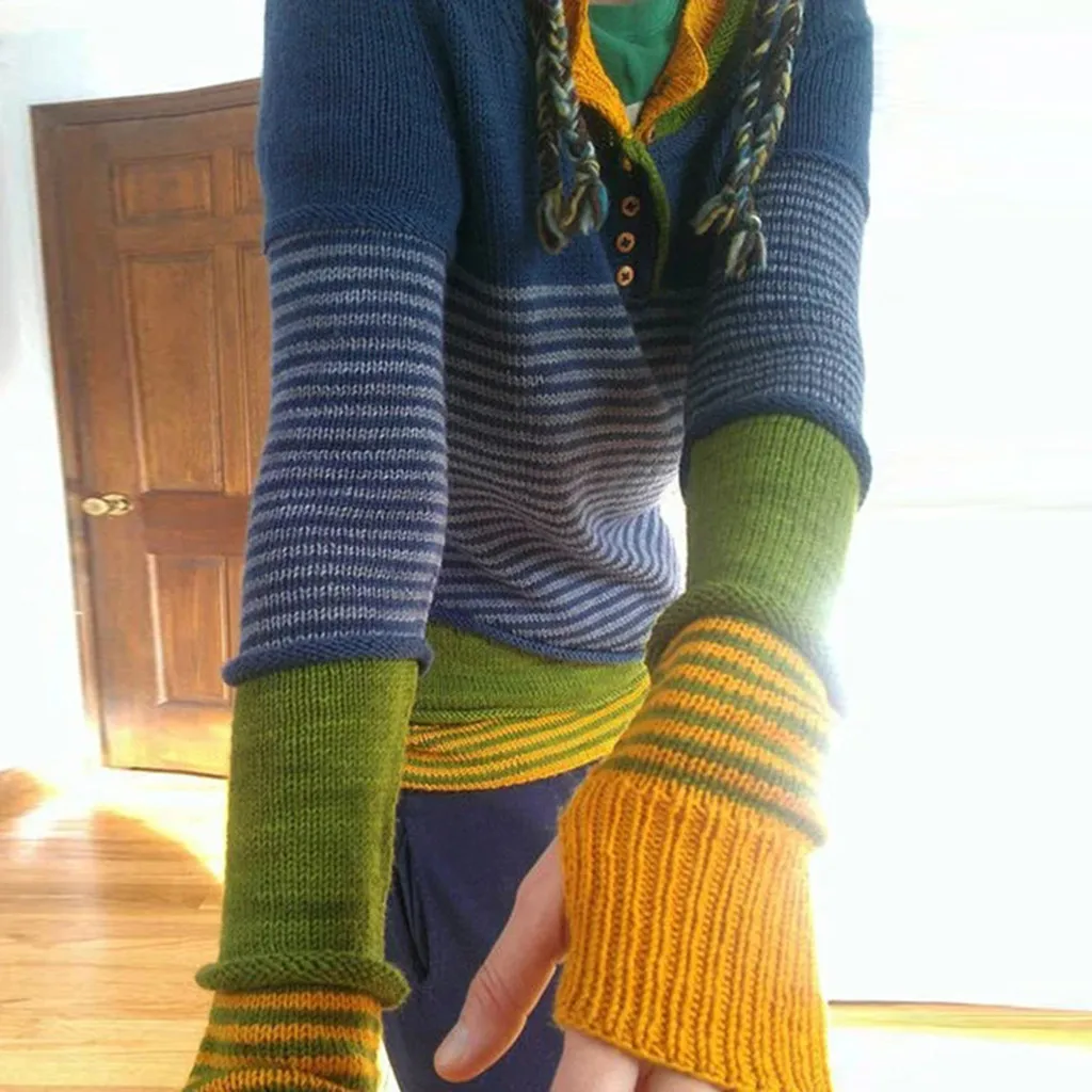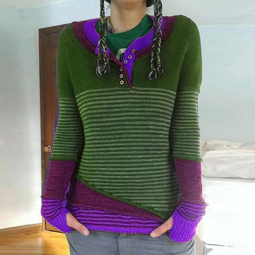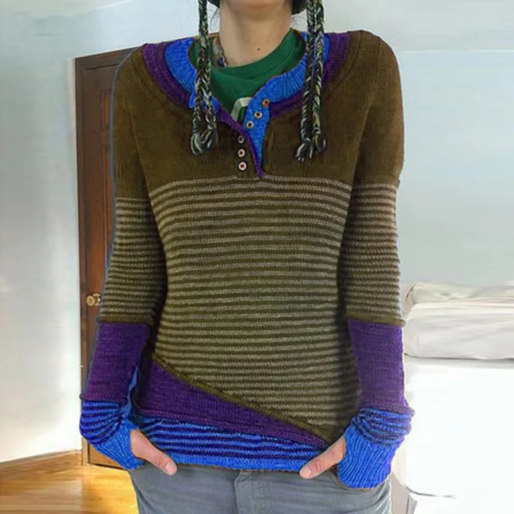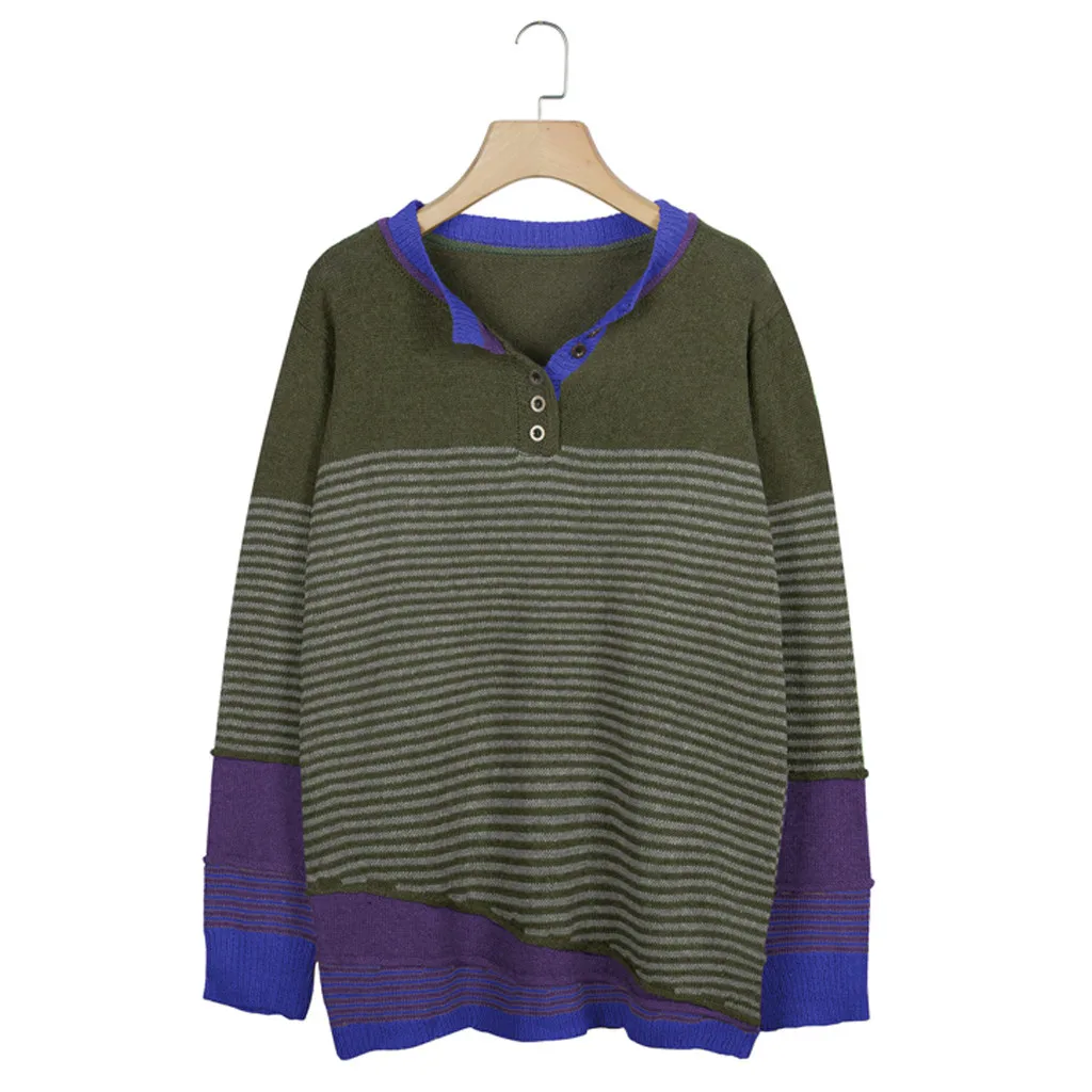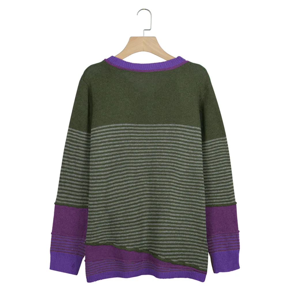 Женский свитер MISSOMO размера плюс, винтажный Повседневный полосатый лоскутный свитер с v-образным вырезом, вязаный свитер большого размера, пуловер, топы для женщин