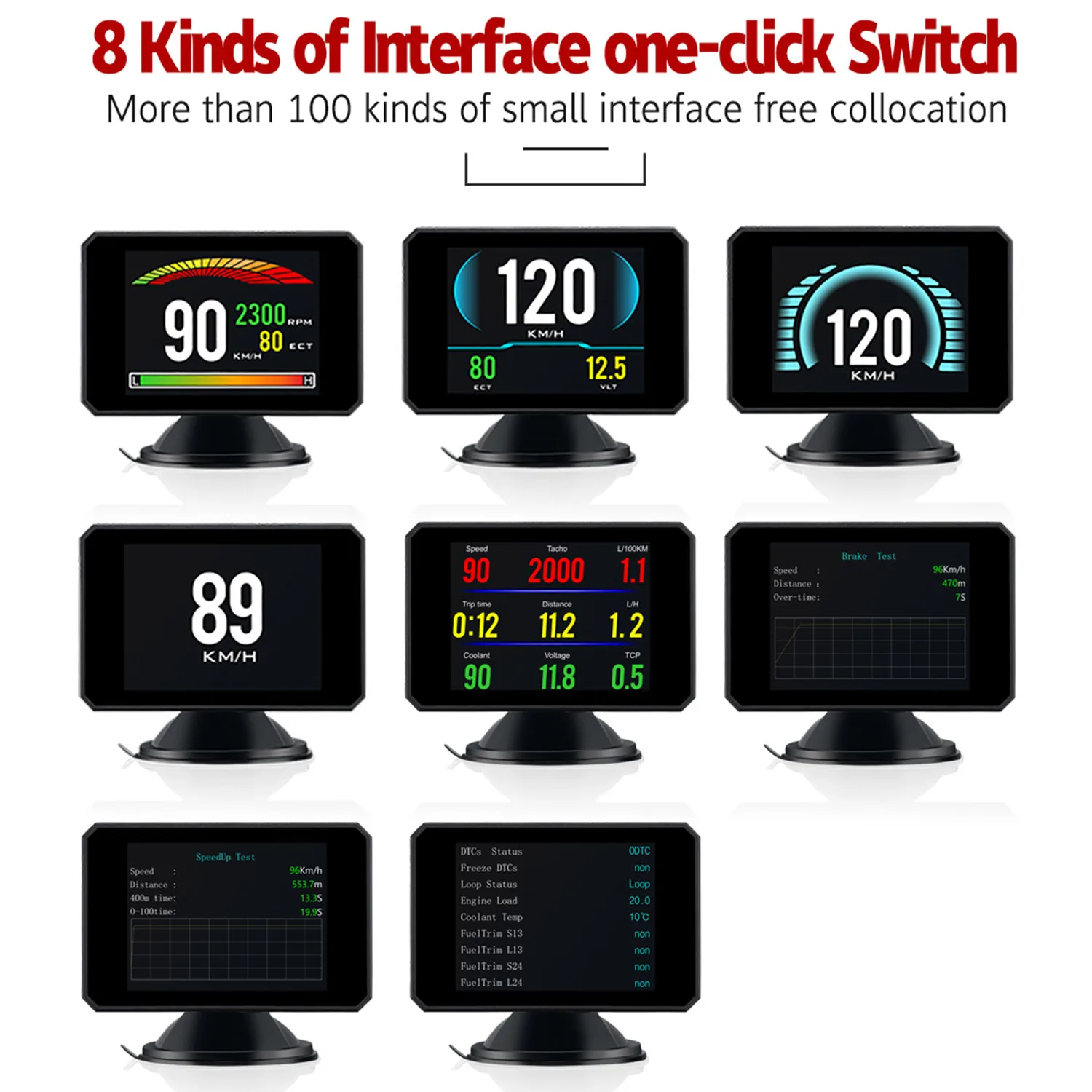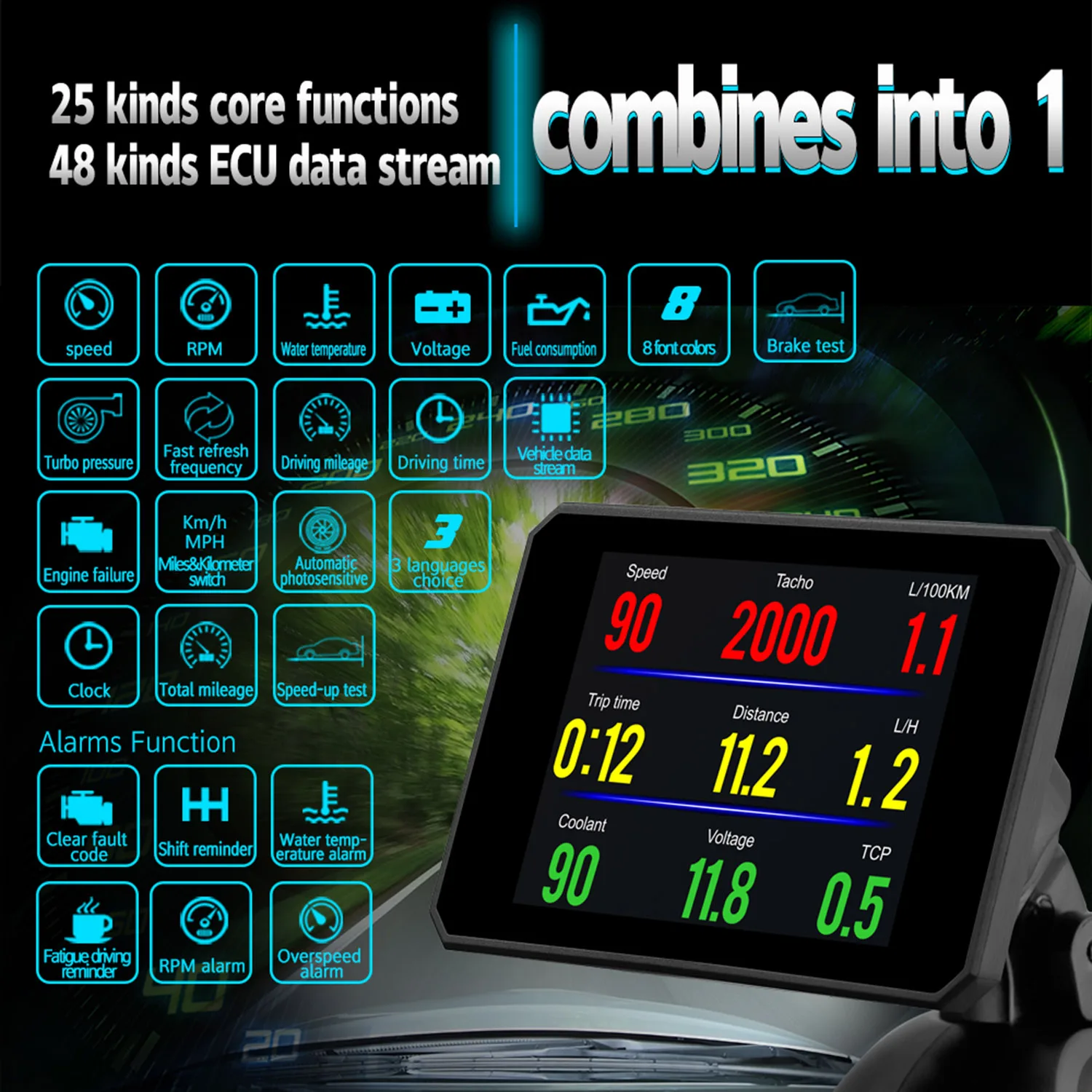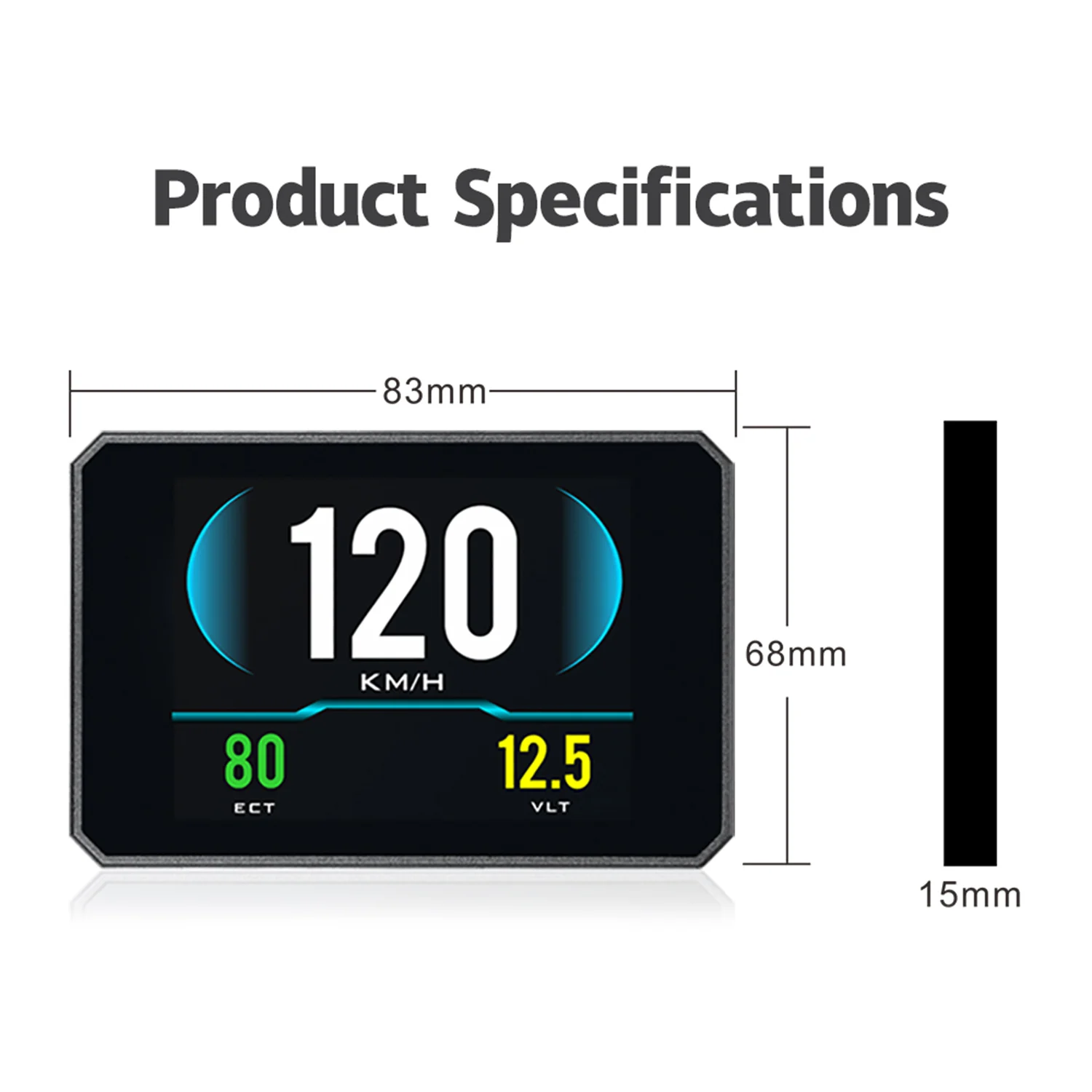 Особенности:Широко используется, работает для всех транспортных средств, автомобилей, внедорожников, грузовиков и т. Д.Простая установка, подключи и работай.Богатое содержание: скорость вождения, напряжение, одиночное расстояние вождения, общее расстояние вождения, время вождения, сигнал тревоги о превышении скорости, свободное переключение между километрами и милями.Функция обнаружения сигнализации: многофункциональная Таблица OBD, каждый параметр может быть установлен.Мониторинг в режиме реального времени условий давления на входе турбо, предотвращение чрезмерного давления турбо, защита турбо. Мониторинг температуры масла в реальном времени, внимание к здоровью двигателя, предотвращение слишком высокой температуры масла, повреждение двигателя. Характеристики:Материал: ПоликарбонатЦвет: черныйРазмер: около 83*68*15 мм/3,26*2,67 * 0.59inЭкран: около 83*68 мм/3,26*2,67 дюймаДисплей: LCD многоцветныйРабочее напряжение: 9V-16Vdc (12Vdc/400mA)Уровень звукового сигнала: ≥ 30 дБ (A)Вес: 170g/5,99 oz Посылка:1 * Дисплей вверх1 * кабель OBD21 * держатель присоски1 * Руководство пользователя
