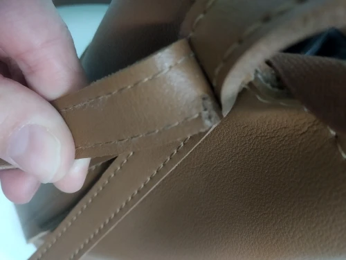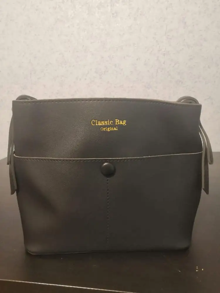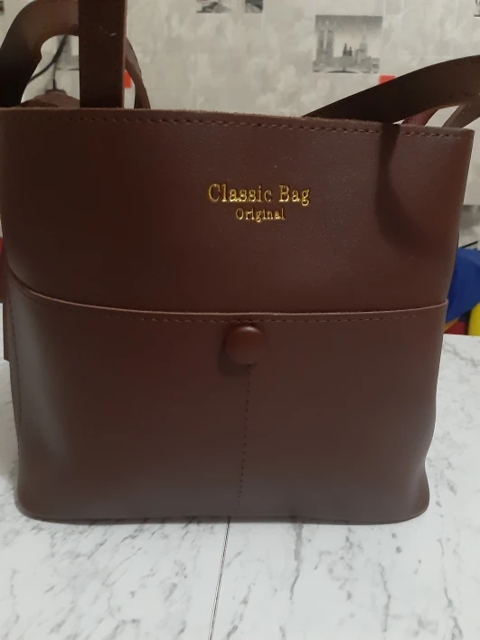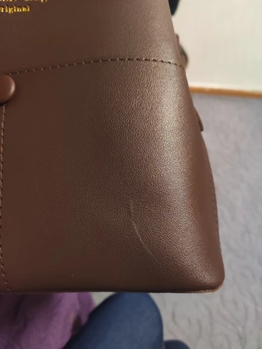 Пришла быстро, в точности как на фото. В меру жёсткая, но на холоде встаёт колом. По этому треснул ручки с местах сгиба у основания, с внутренней стороны, не критично, не видно Не для зимы. А так сумка хорошая)