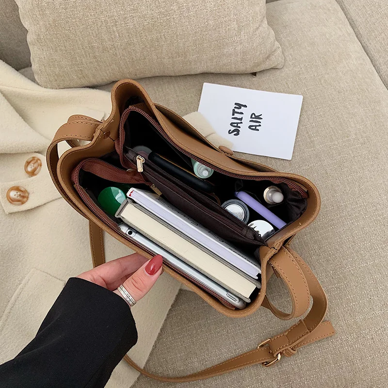 Сумка-ведро casaul женская из экокожи, дизайнерский саквояж на плечо, роскошный чемоданчик кросс-боди из мягкой экокожи, вместительный тоут, большие кошельки