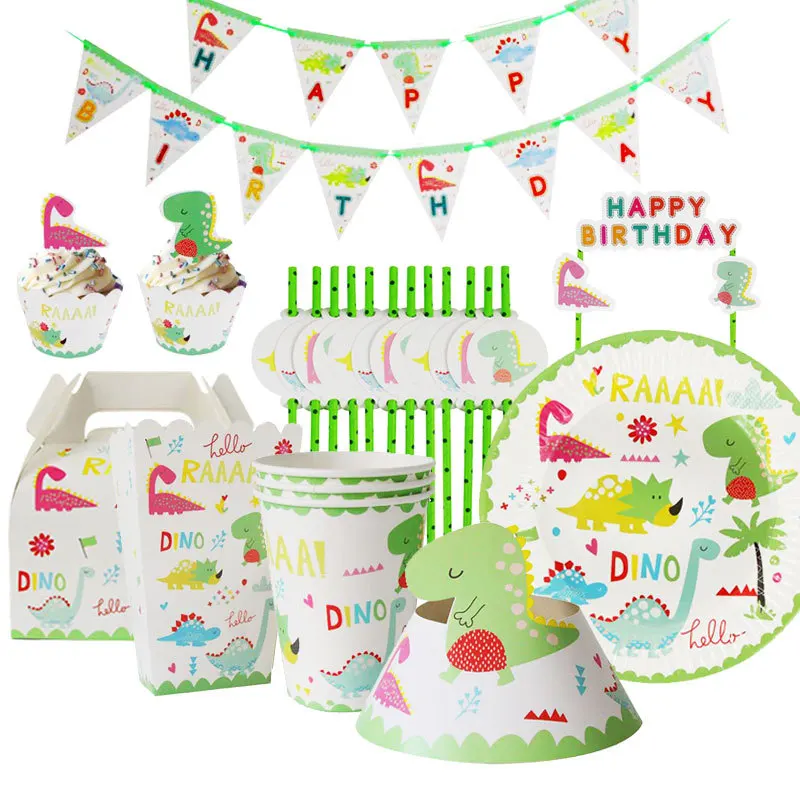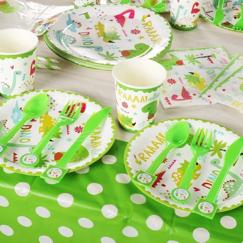 Зеленая динозавр вечерние НКИ, одноразовая посуда, чашка, тарелка, ...