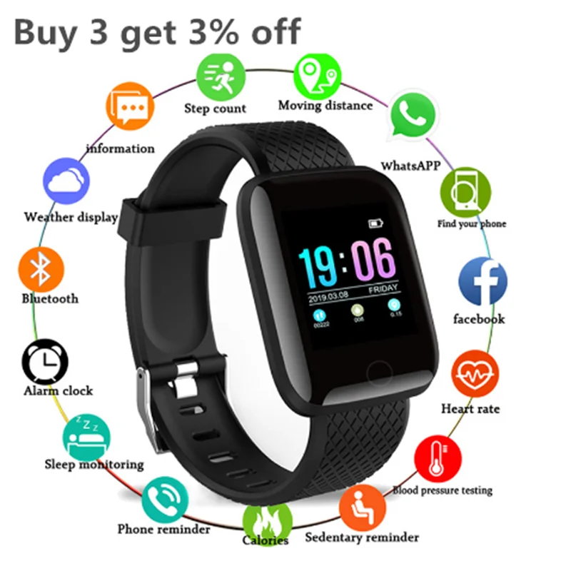 Модель: 116Plus, версия Bluetooth: Bluetooth 4,0, язык часов: английский, китайский. Уровень водонепроницаемости: дождь, пот, купание и плавание не поддерживаются. Режим работы: сенсорная кнопка, совместимая Операционная система: Android, IOS Емкость аккумулятора: 150 мАч, время работы в режиме ожидания: 3-5 дней Функции: будильник, кислород в крови, дата, измерение сердечного ритма, сообщение, напоминание о сидячем положении, управление сном, время. Типы уведомлений: Facebook, Twitter, WeChat, WhatsApp. Тип сигнализации: вибрация. Приложение: Fitpro. Форма циферблата: квадратная. Чехол Материал: металл. Материал ремешка: силикон. Полоса пропускания: 260x20 мм. Размер циферблата: 39,8x39,8x9,6 мм. Длина ношения: 160 мм-240 мм. Посылка Вес: 0,096 кг Размер упаковки (Длина x Ширина x высота): 10,50x8,50x6,00 см/4,13x3,35x2,36 дюймов.