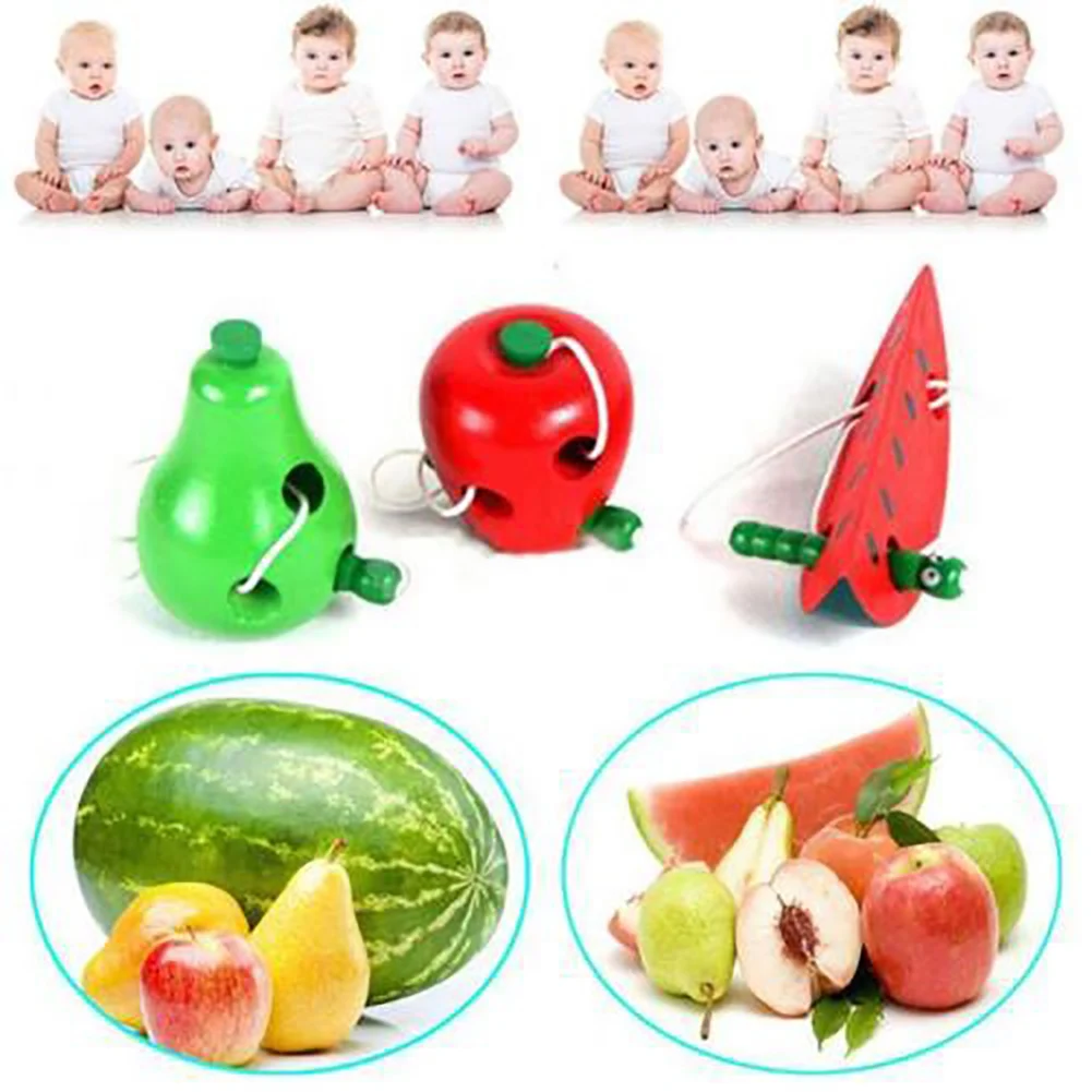 Детская Деревянная Игрушка-пазл Червь с фруктами