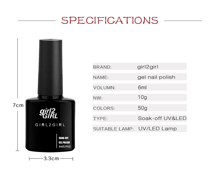 Гель-лак для ногтей Girl2girl, УФ светодиодный Гель-лак для замачивания, 6 мл, новый дизайн ногтей, 50 цветов