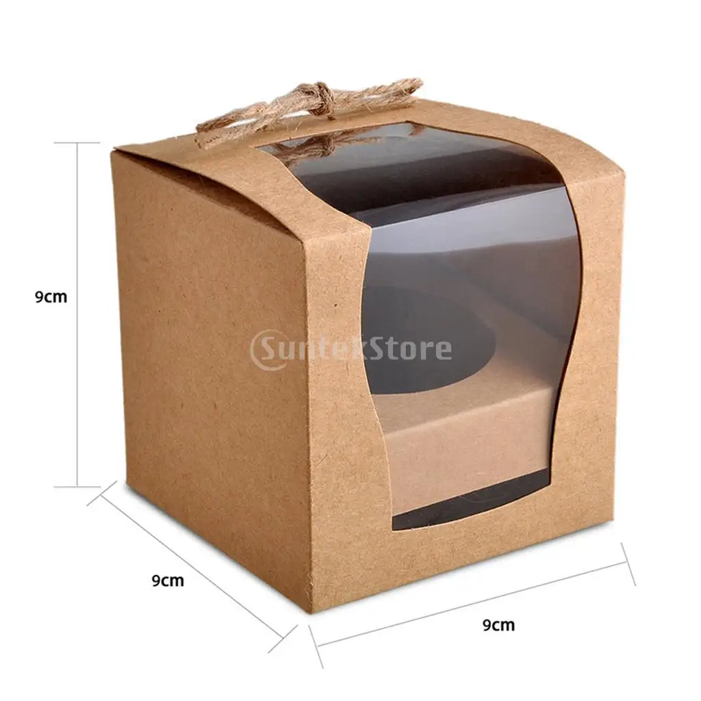 12 шт.компл. винтажная бумажная коробка для пирожных, капкейков, коробка для выпечки с окошком, с веревкой, подарок на день рождения, свадьбу, мини-коробка, упаковка