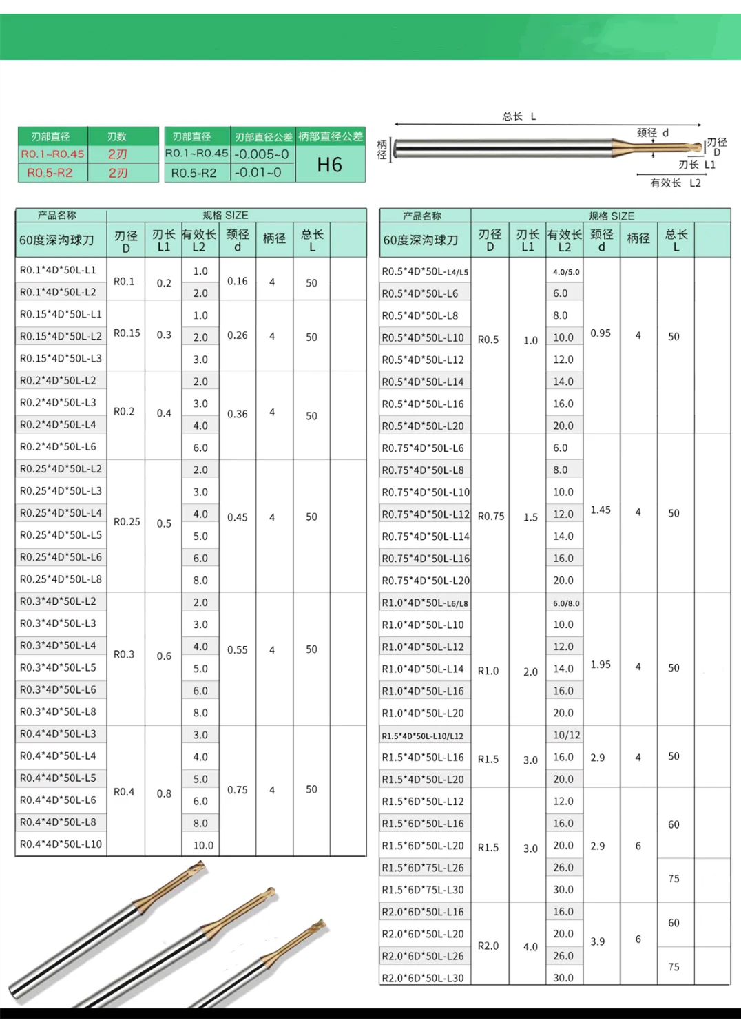 Концевая фреза с ЧПУ R0.1MM R0.2MM 0,2 MM 0,3 MM-3MM 2F, удлиненное удлинение с глубоким отверстием, избегание резки для металла, вольфрамовой стали