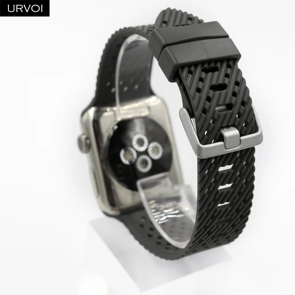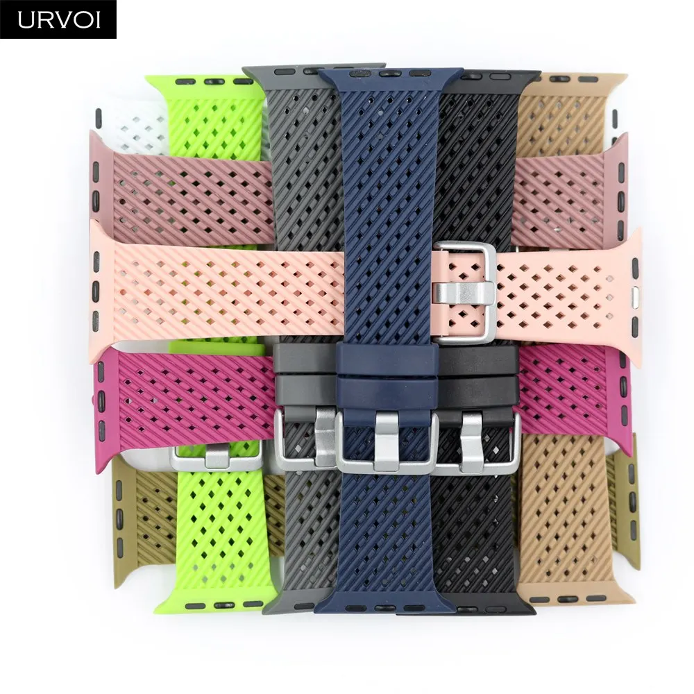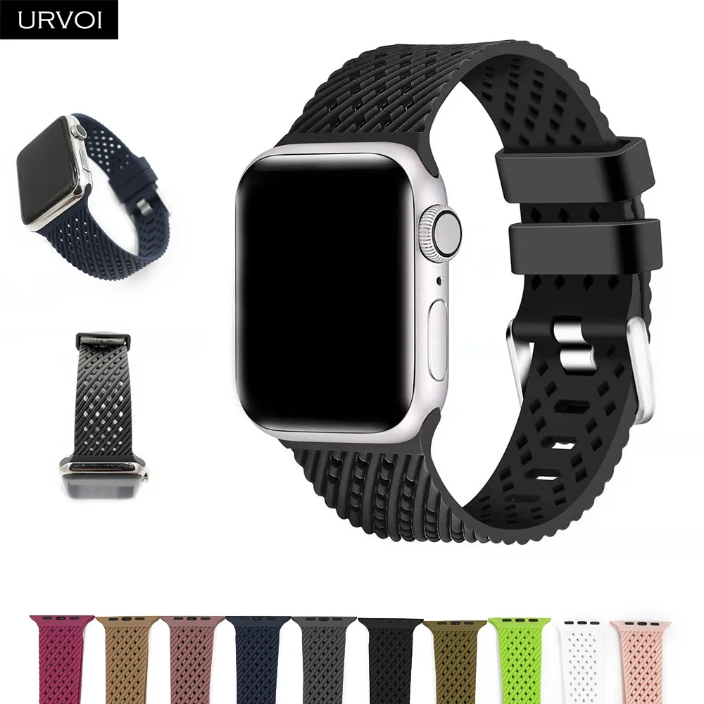 Ремешок спортивный URVOI для Apple Watch series 7 6 SE 5 4 321, мягкий браслет из ТПЭ для iWatch, наручные дышащие, дизайн 38 40 42 44 мм