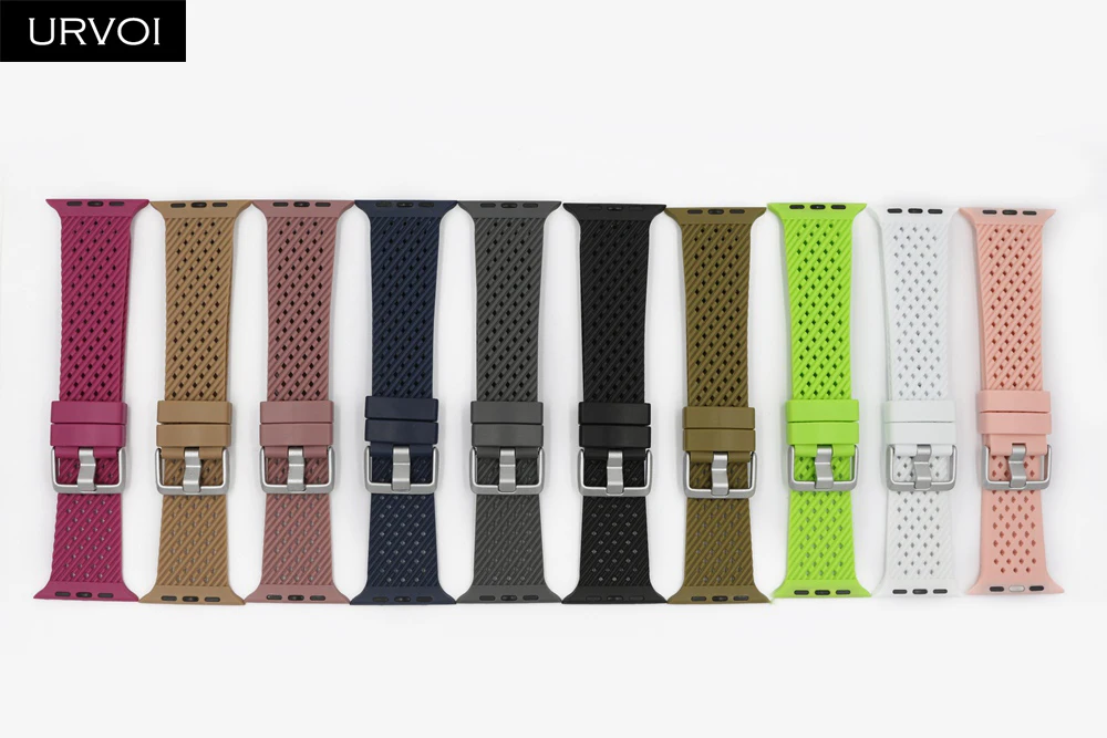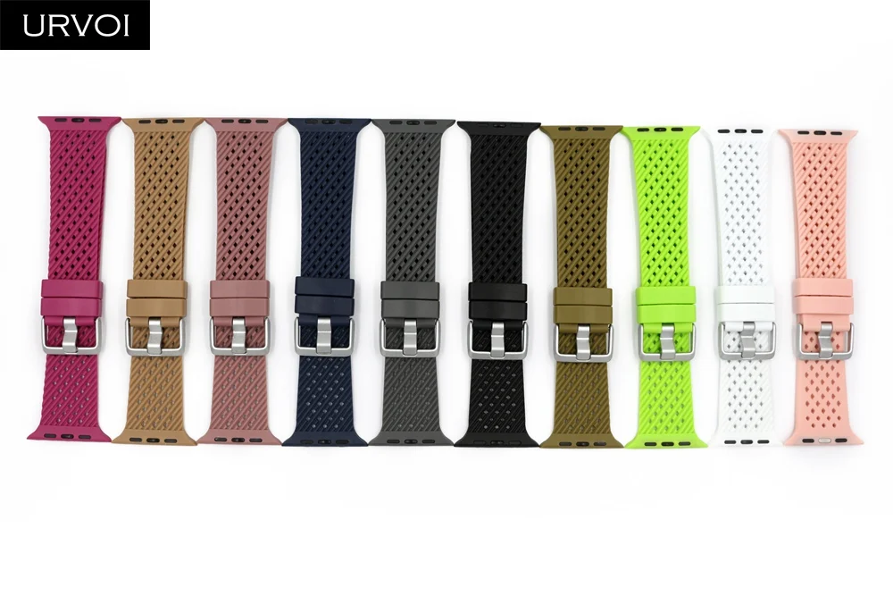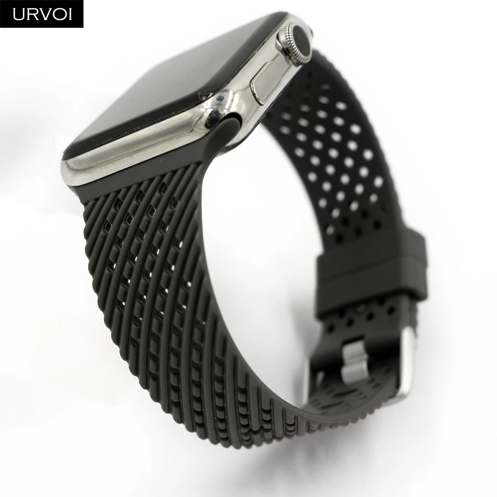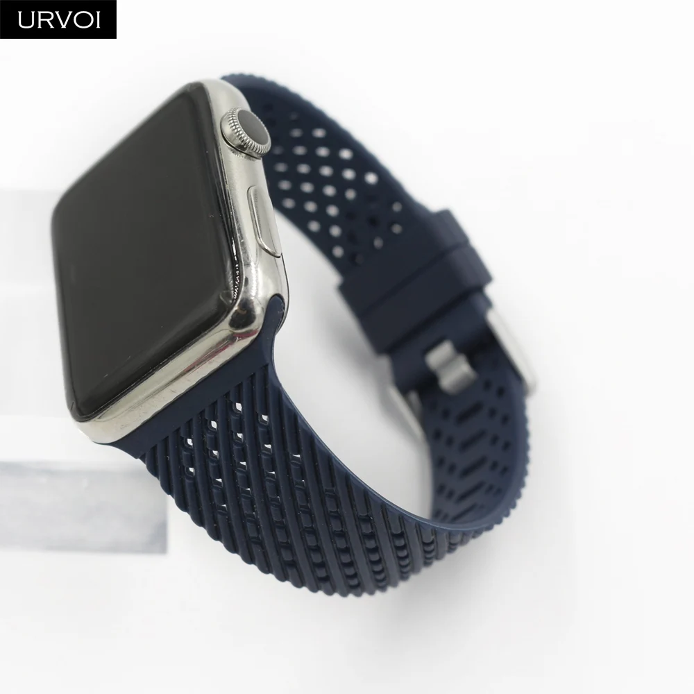 Ремешок спортивный URVOI для Apple Watch series 7 6 SE 5 4 321, мягкий браслет из ТПЭ для iWatch, наручные дышащие, дизайн 38 40 42 44 мм