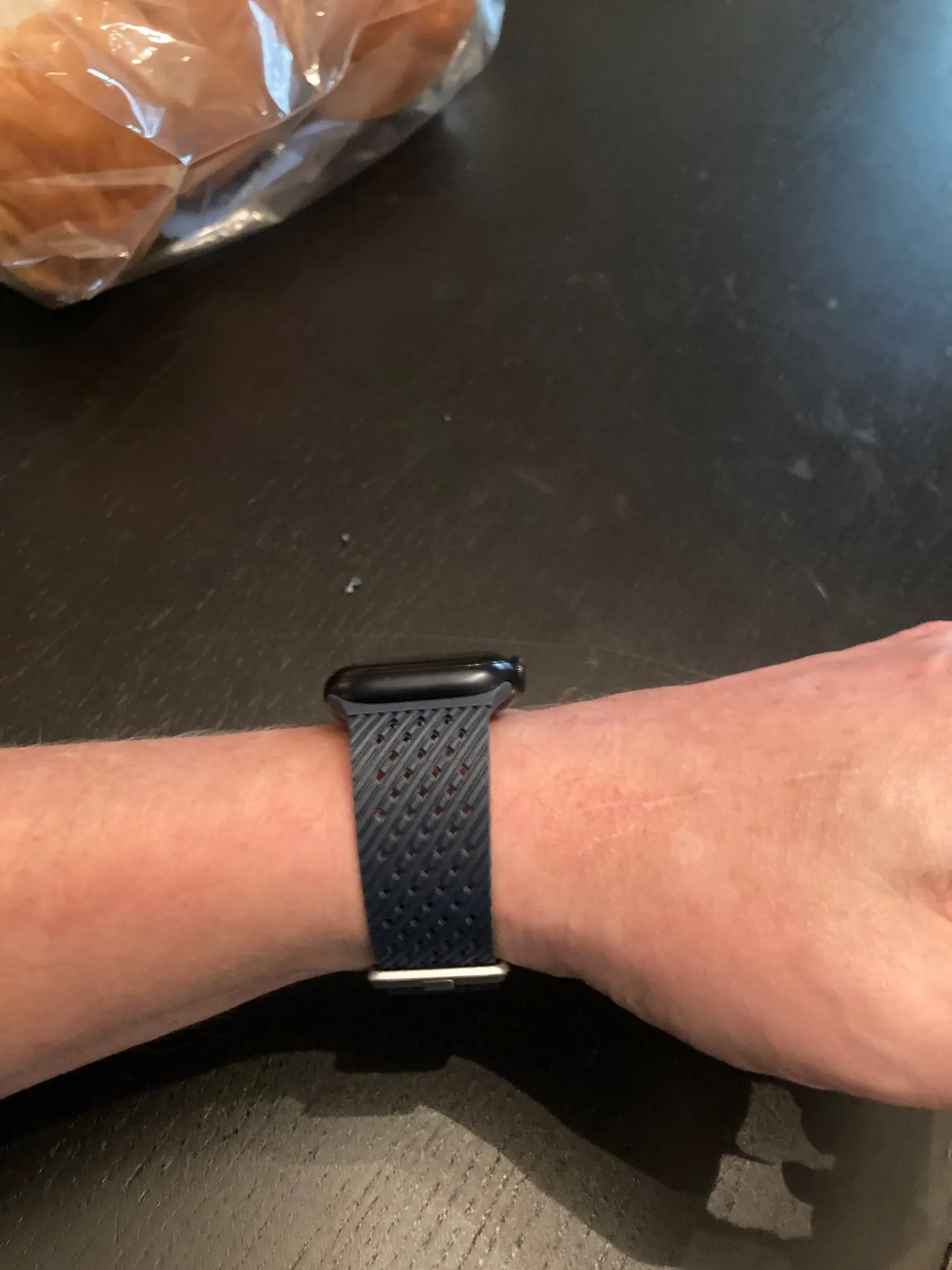 Выглядит хорошо. Приятный материал. Идеально подходит для работы. Немного растягивается, благодаря чему хорошо сидит. Немного длиннее. Всего 1 отверстие слева. Пришлось отрезать его по размеру.