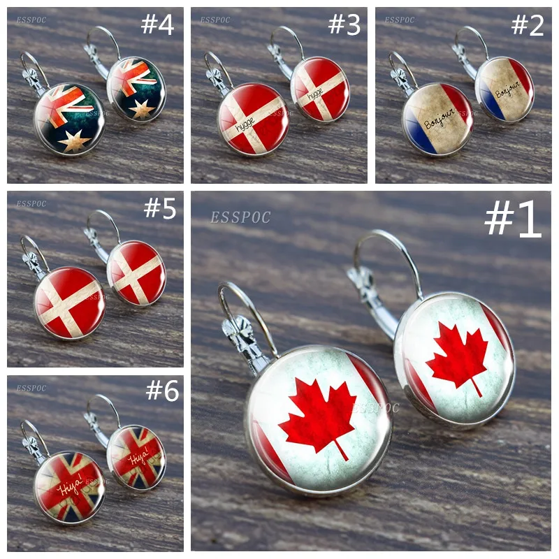 Серьги с американским флагом, стеклянный кабошон, серьги с крючком в датском, канадском, французском, британском стиле, 2 шт.компл.