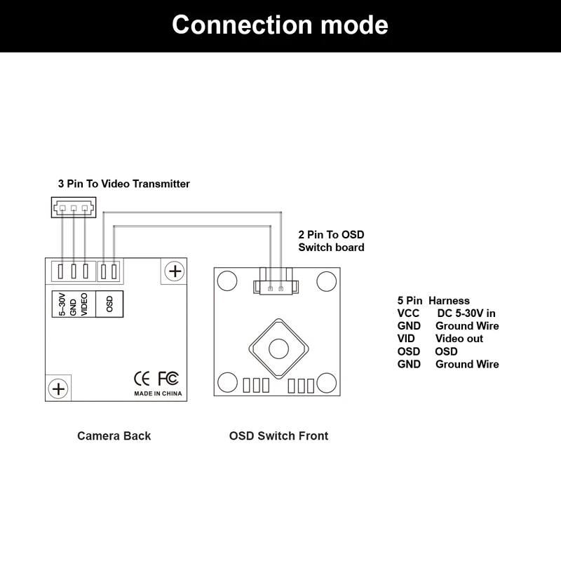 Мини VTX-Cam 5,8G 48CH 100mW передатчик с камерой 800TVL и Skydroid...