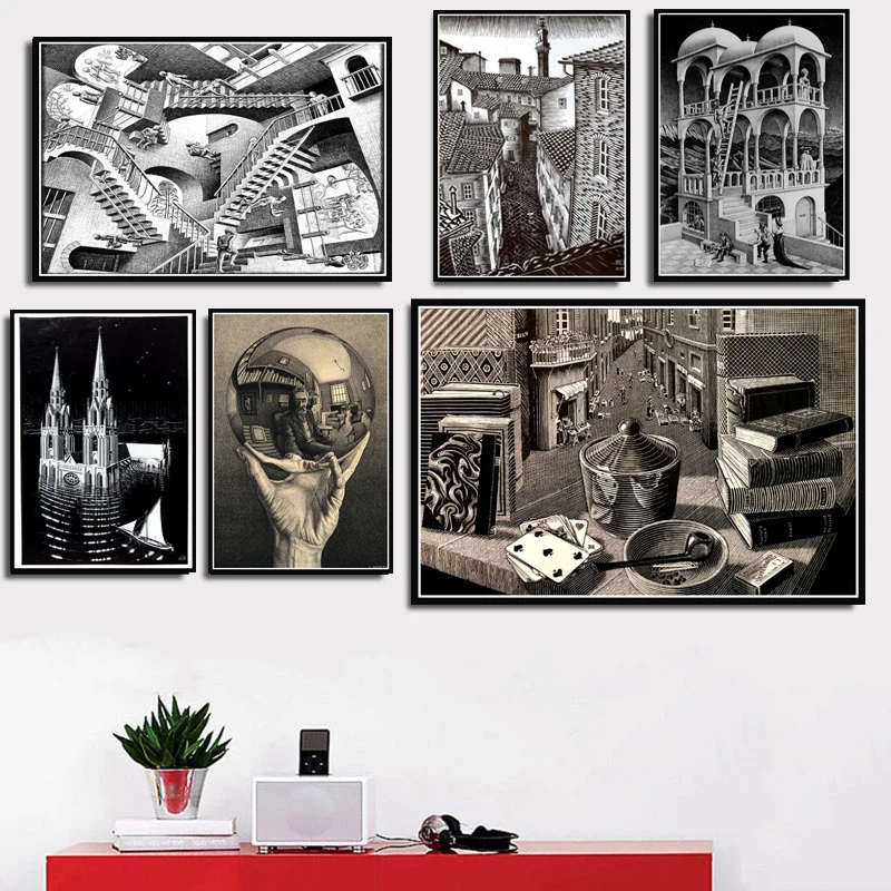 Картина искусство Escher геометрические Ретро Винтажные художественные плакаты и принты настенные картины Домашний декор квадратные картины