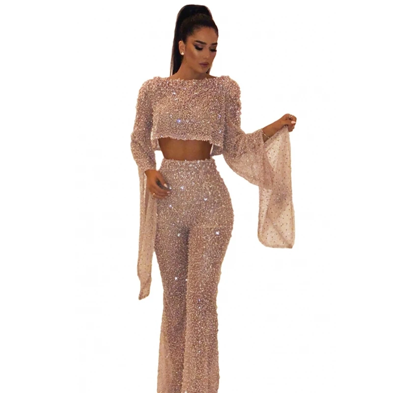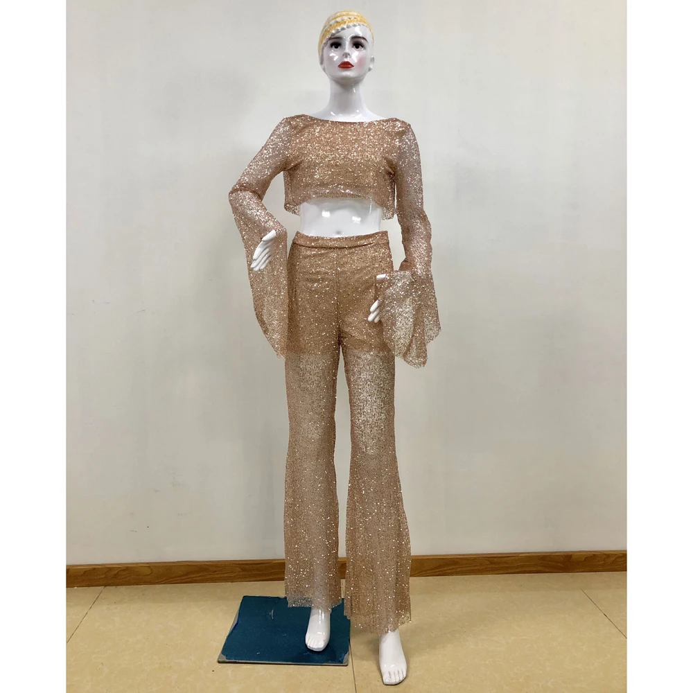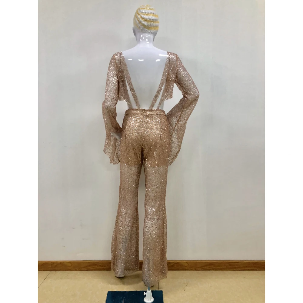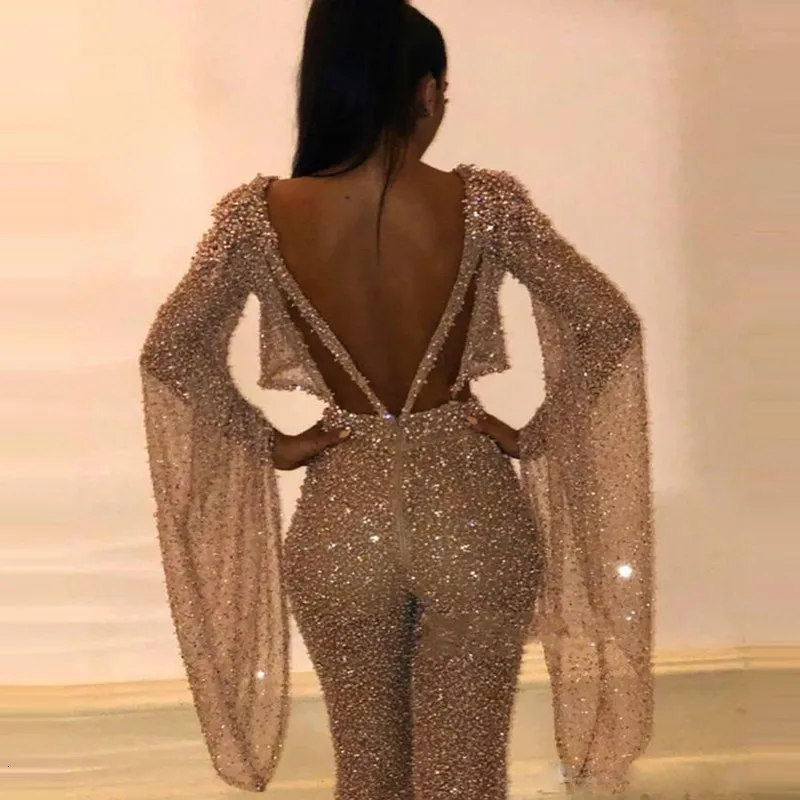 Женский Блестящий Комбинезон, длинный вечерний комбинезон с открытой спиной, осень 2021