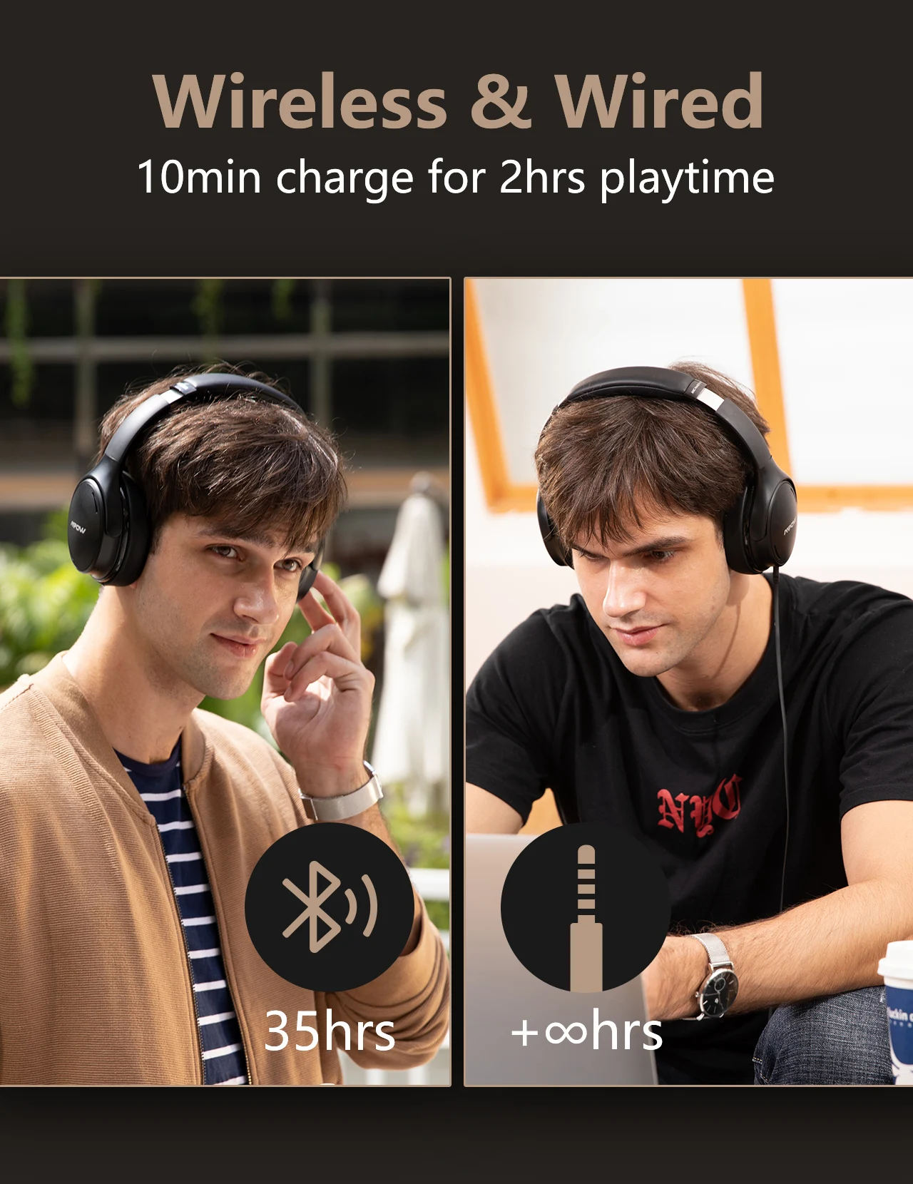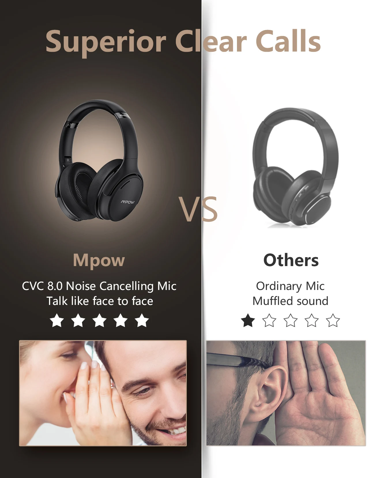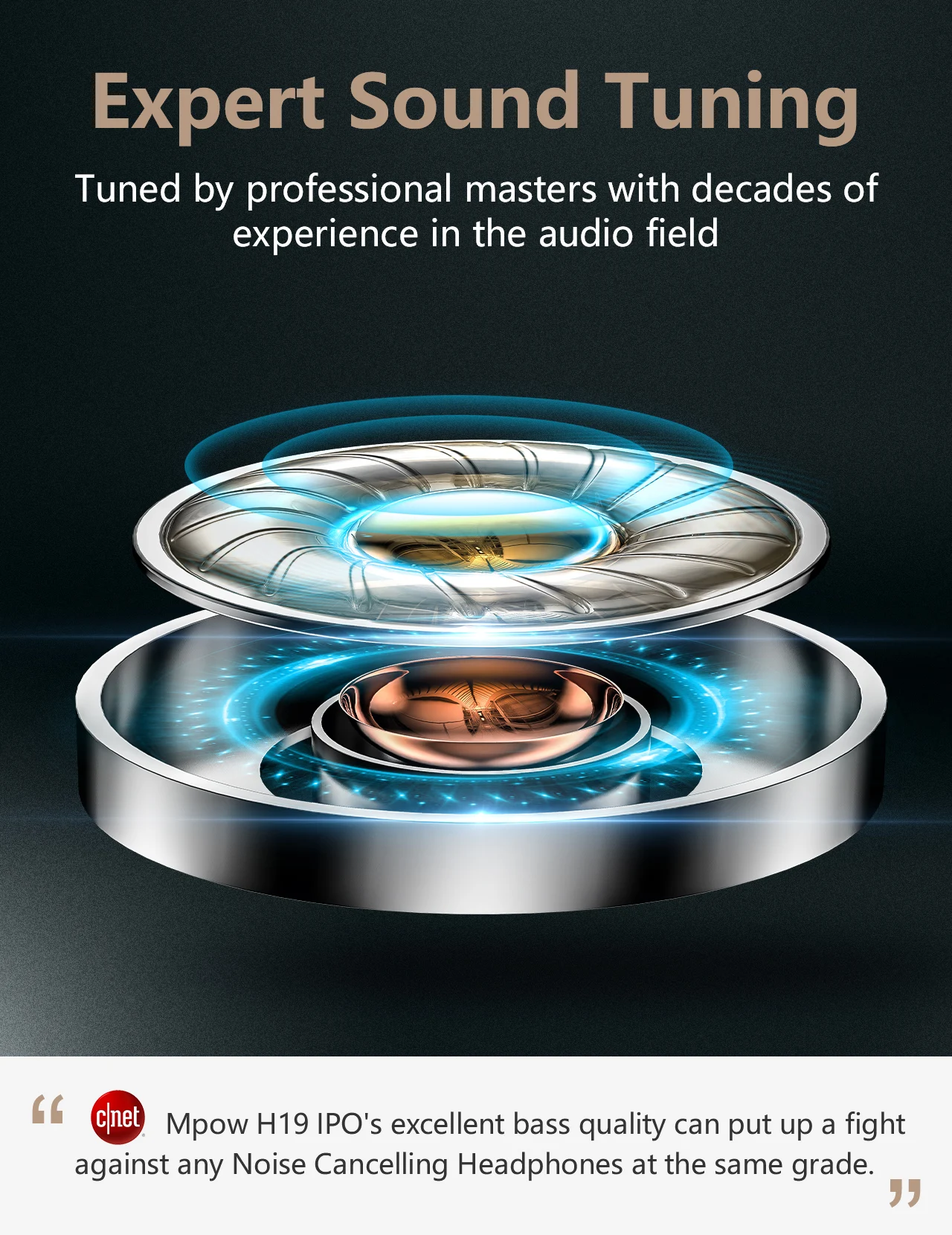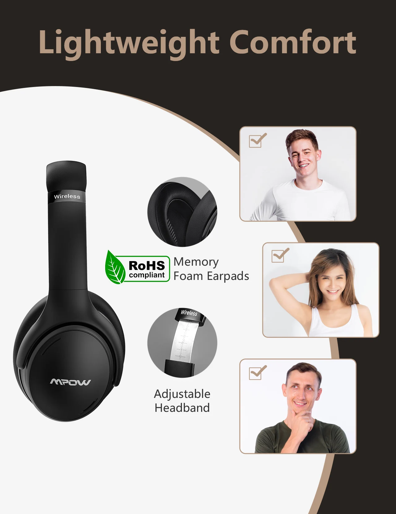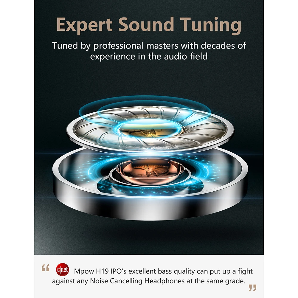 Наушники Mpow H19 IPO Bluetooth 5,0 с активным шумоподавлением, легкие беспроводные, с микрофоном CVC 8,0, 30 часов воспроизведения, быстрая зарядка