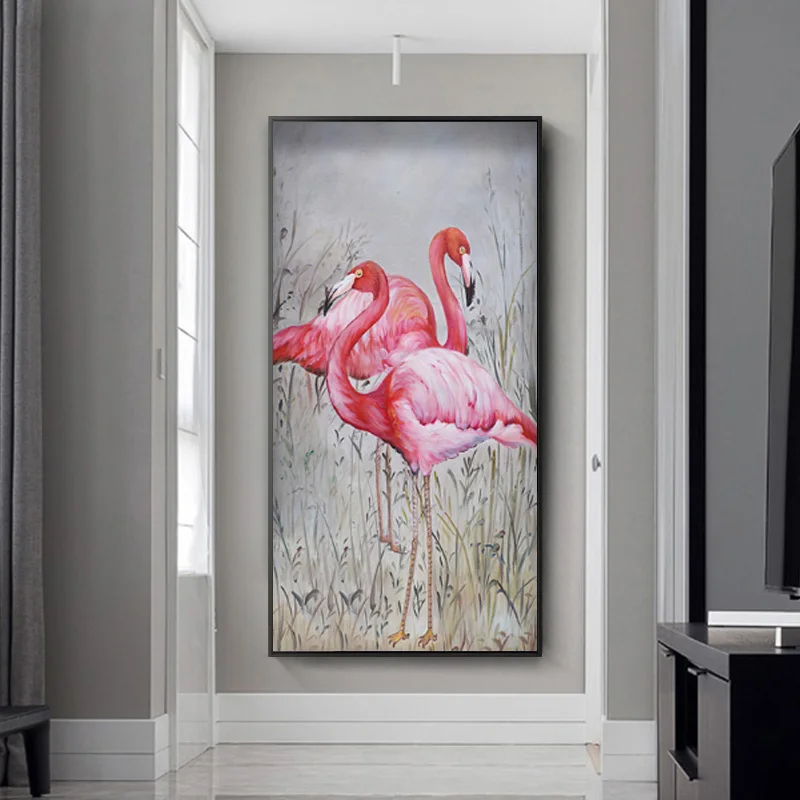 Современная Скандинавская живопись на холсте с изображением животных, Розовый фламинго, постеры и принты, настенные картины для гостиной, домашний декор