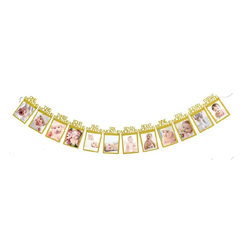 12 месяцы фоторамка бумажный баннер первый день рождения Декор первый ребенок мальчик девочка мой 1 Год Вечерние принадлежности розовое золото флаг