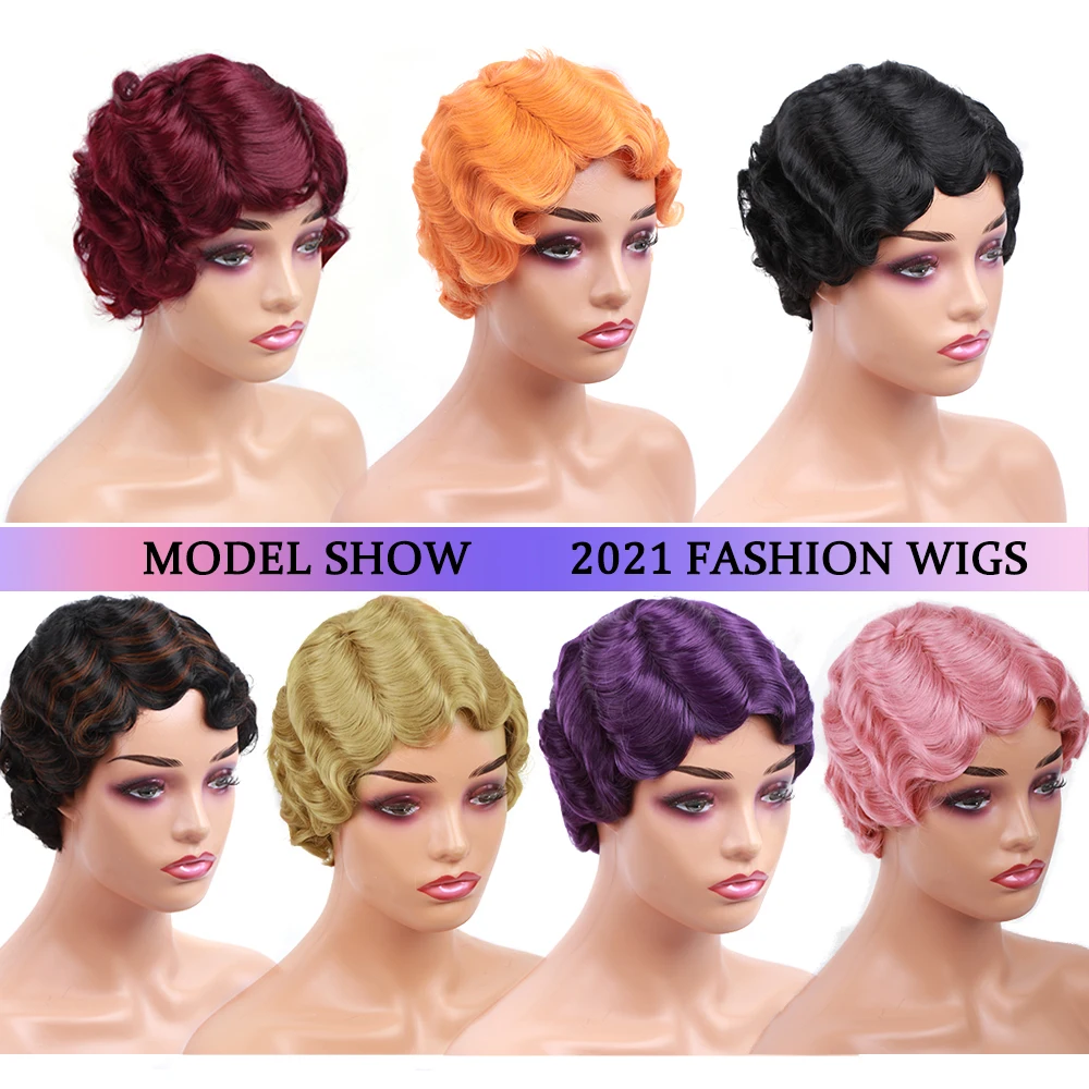 Синтетический волнистый парик Amir с короткими пальцами, красные, Боб, мамочки, парики для чернокожих женщин, парики с кудрявыми отрезами, блонд, парик для косплея, черный