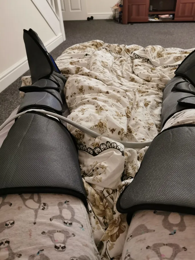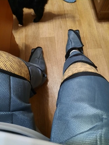 Очень понравилось. Сжимает сильно, но приятно. Ножки после массажа становятся легче. Правда, что-то щелкает в самом насосе, не знаю сколько прослужит из-за этого. На мои ноги 75 см в объеме на самом верху, залезли и мне кажется еще 5 см есть. Так что напрасно боялась. ТОчно на длинные ноги. Мои короткие помещаются и эти сапоги кажутся большими, но когда начинают сжимать все забываешь. Давление идет постепенно со стопы и перемещается в верх. Стопа - ослабление, стопа и икра - ослабление, а после верх. Очень приятно, но может кому-то и сильно. Пришли в приличной коробке, курьером и очень быстро, но брала из РФ. Советую, мне в кайф!