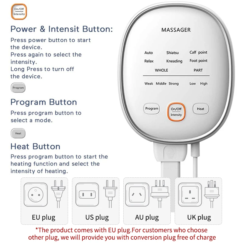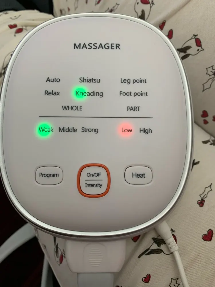 Отлично работает,массаж ног, расслабляет мышцы,перед использованием посоветовайтесь с врачом,та как запрещается использовать при глубоком тромбозе вен.Спасибо продавцу!