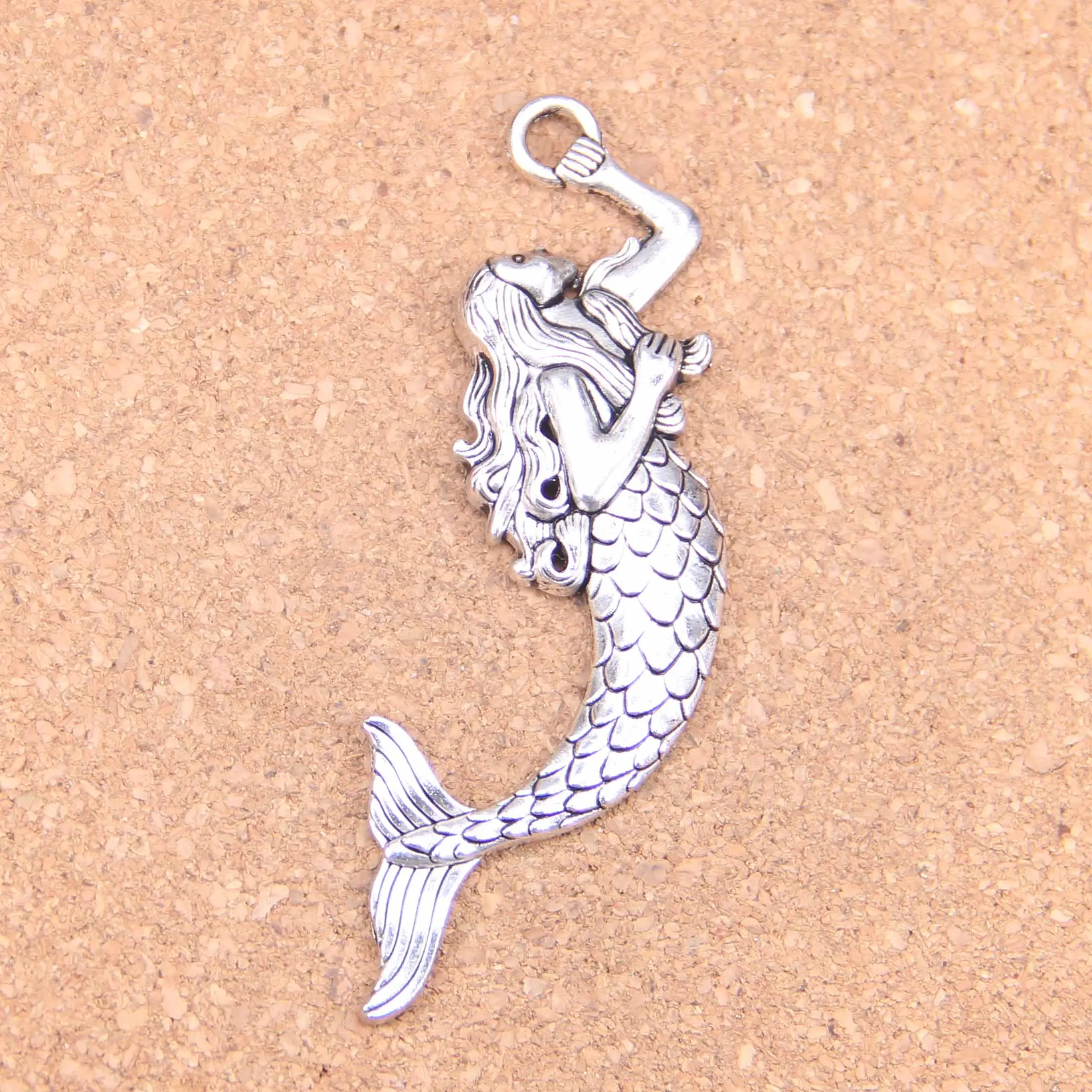 Подвески русалки 77x5 4 мм старинные подвески, Винтажные Ювелирные изделия из тибетского серебра, для браслета, ожерелья, 20 шт.