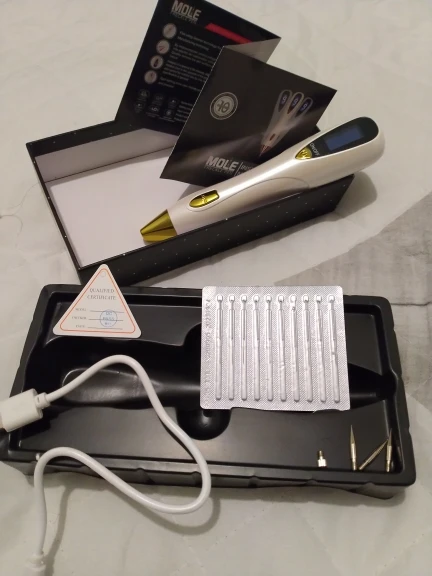 Отличный товар, работает хорошо. Попробовала прижечь пятно, похожее на бородавку, посмотрим когда отпадет, как будет выглядеть. 1ое фото до, 2ое как прижгла, а 3ее через дня два-три. Доставка примерно 3 недели.