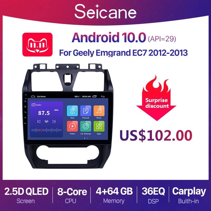 Автомобильное радио Seicane, 10,1 дюймов, Android 10,0, 2 + 32G QLED, GPS-навигация для Geely Emgrand EC7 1 2009-2016, 2 din, видеоплеер, DSP