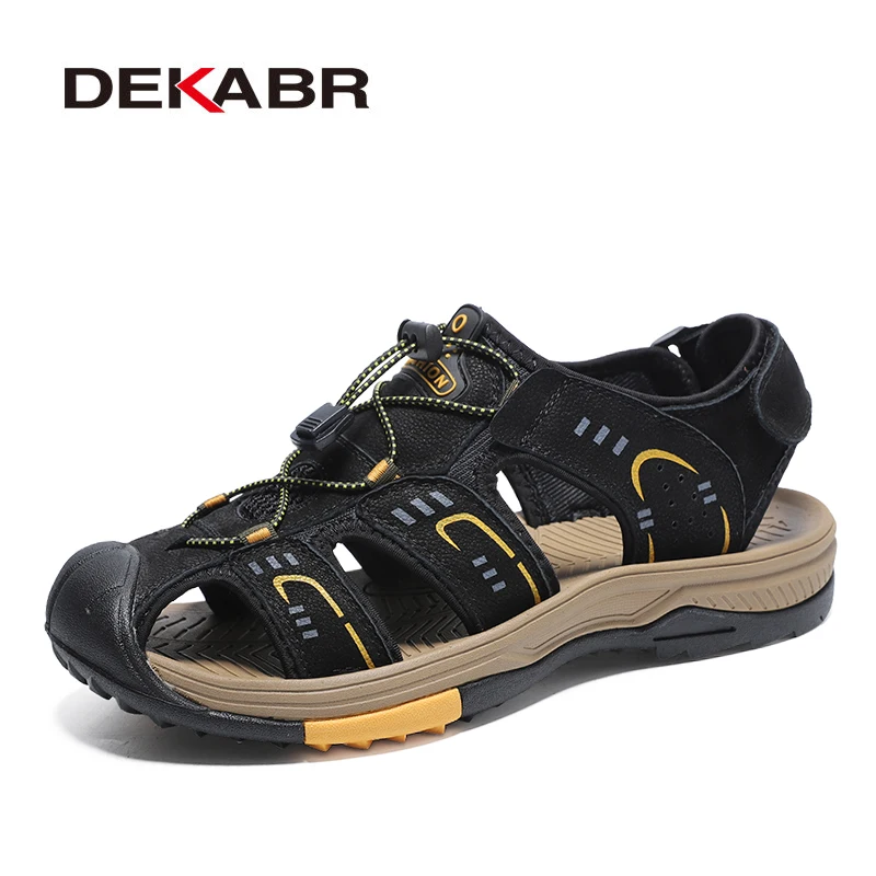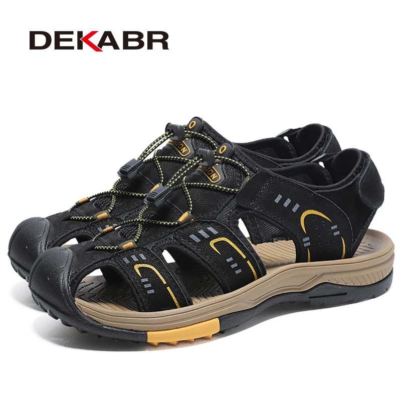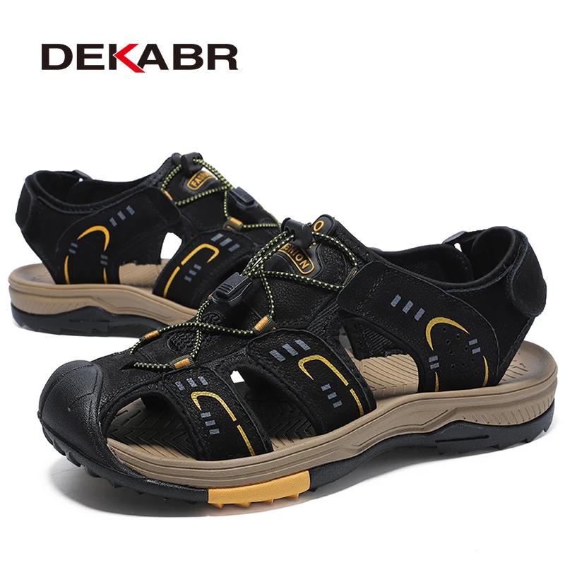 DEKABRмодные мужские сандалии из натуральной кожи; Летняя обувь; Легкие удобные мужские пляжные сандалии; Кожаная мужская обувь размера плюс 38 46