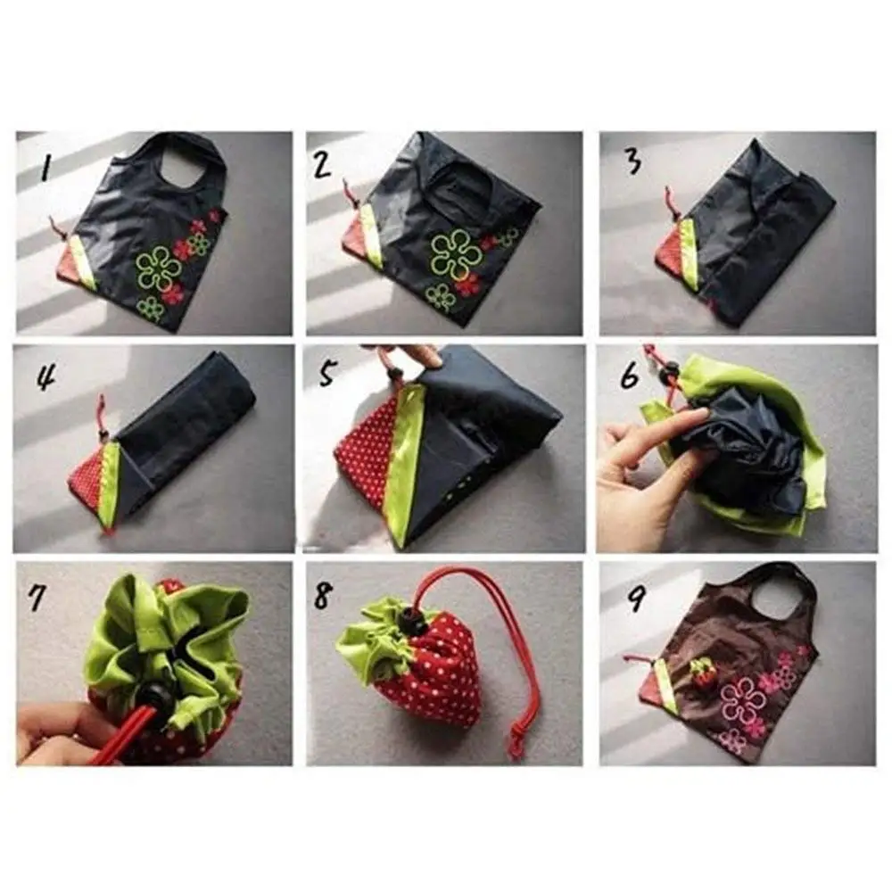 Когда сумка не используется, ее можно скрутить/сложить в удобную симпатичную клубнику и хранить в сумочке, автомобиле и т. Д.