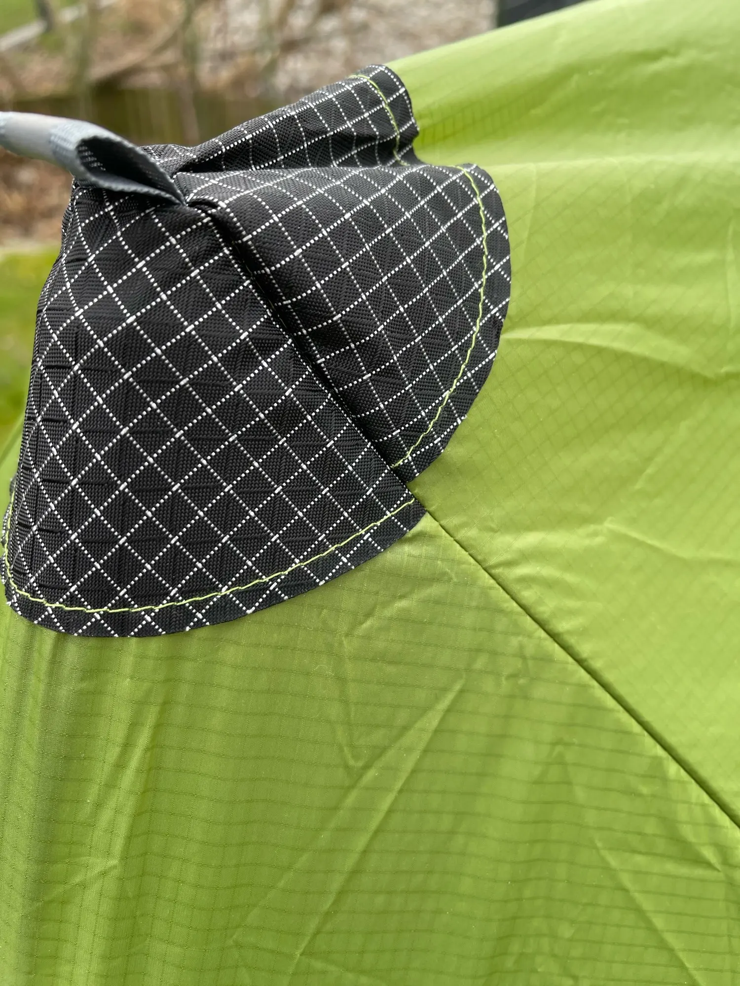 Товар получил Спасибо, но я немного разочарован тем, что ремешки для фиксации палатки были заменены дешевым шнуром нейлон. Кроме того, резиновые амортизирующие шнуры для ванны (основание палатки) также были заменены веревкой, из-за которой было трудно настроить. Пришлось заменить шнуры на резиновые ударные шнуры из моего местного магазина оборудования, все остальное хорошее