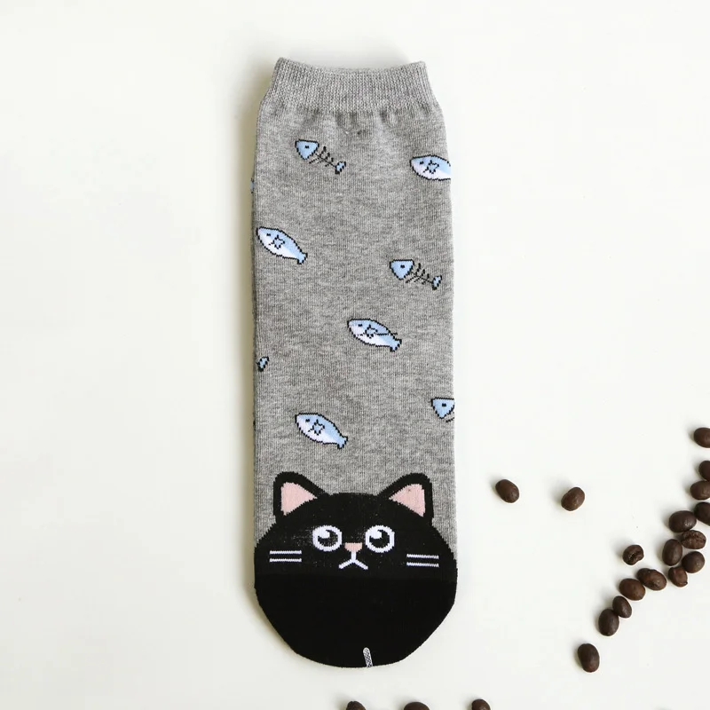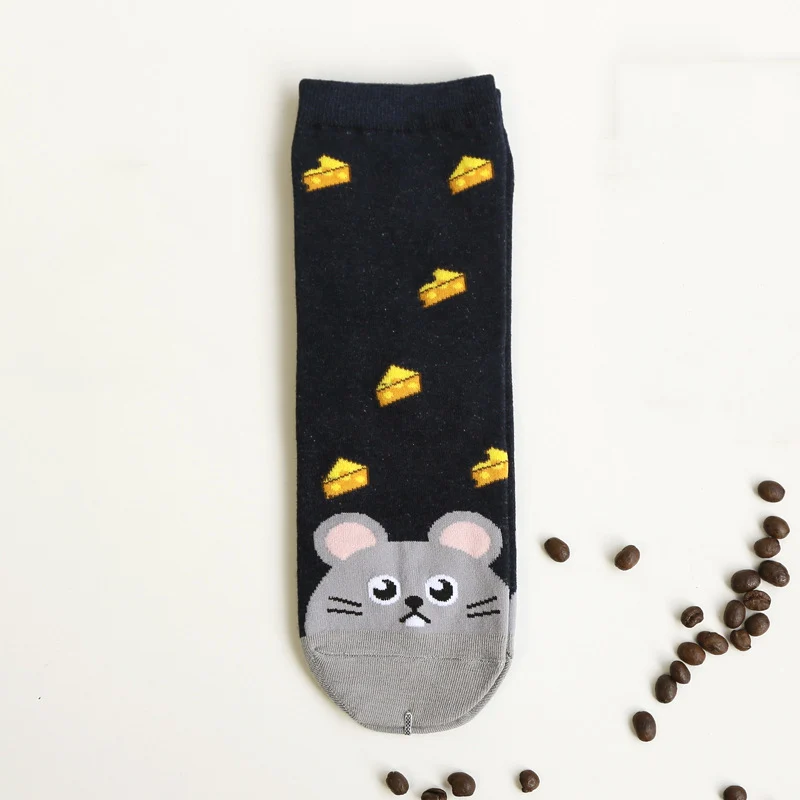 Новый дизайн, милые хлопковые жаккардовые носки с фруктами, женское милое животное, кошка, следы собаки, носки, зимние женские носки