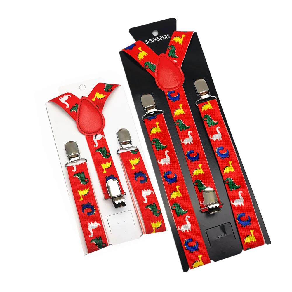 Подтяжки с 3 зажимами для детей и взрослых, регулируемые подтяжки с красным динозавром, с принтом животных, шириной 2,5 см, для мальчиков, девочек, мужчин, женщин