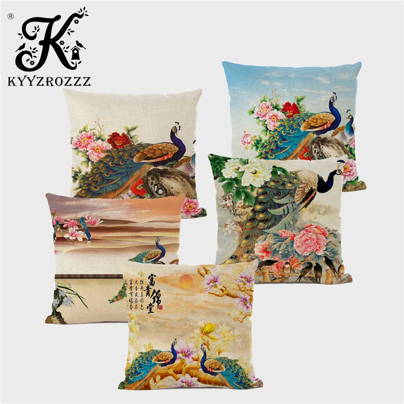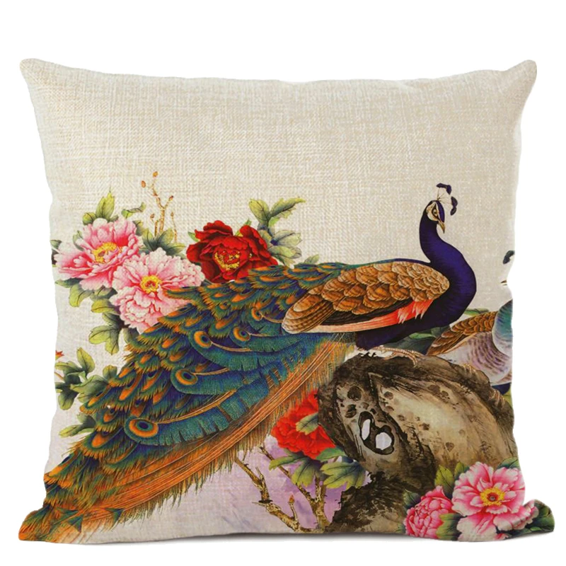Новый домашний декор в виде животных Наволочка ретро павлин льняная Наволочка на стул диван украшение для дома наволочка 45х45см