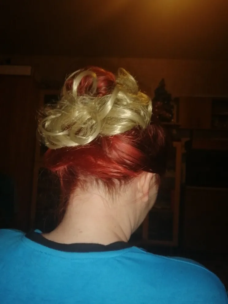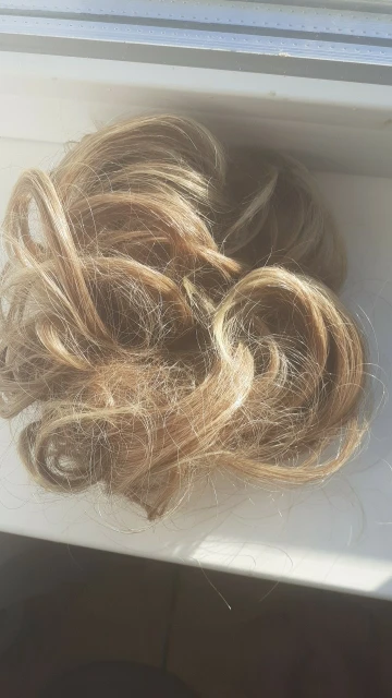 Доставка месяц. Не слишком опрятный пучок , но наверно так и должно быть. Волосы блестящие , довольно жёсткие, вроде не сыпятся, закреплены на довольно тугой резинке: два оборота на вашем собственном хвосте будет вполне достаточно. По цвету вроде тоже угадала. Посмотрим как будет в деле)