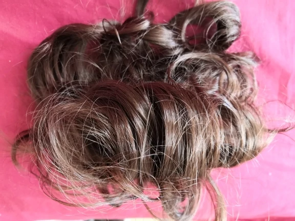 Заказала три штуки, чтобы попасть в цвет, в итоге всё равно не попала. Но тут претензий нет. Все три изделия (не знаю, как их правильно назвать) сделаны весьма неряшливо, но по цене и качество. До этого заказывала у другого продавца, но там меньше цветов и дороже в полтора раза. Но и качество лучше. Эти же изделия имеют длинные волосы, поэтому они не торчат завитками, а спадают волнами, ну и видно резинку, на которой они намотаны. На фото темный хвост - это чужой, другого продавца, он для сравнения. В целом, если надо найти свой цвет и если поработать руками над этими хвостами (аккуратно расчесать, расправить на резинке, где-то начес сделать, правильно уложить, когда наденешь), покупать и носить их можно. С теми короткими, что я раньше покупала, таких проблем нет. Расчесал наскоро, нацепил и побежал :) Фактура хорошая, не сильно блестящая, не выделяются на своих волосах (если в цвет попадёшь). Доставка быстрая.