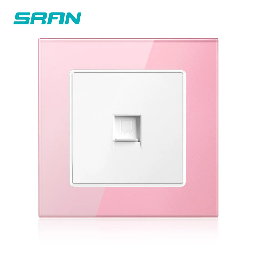 Настенная розетка RJ45, Интернет CAT5, сетевой коммутатор компьютерного порта, RJ45, прозрачное закаленное стекло, 86 мм * 86 мм A6XX003 SRAN