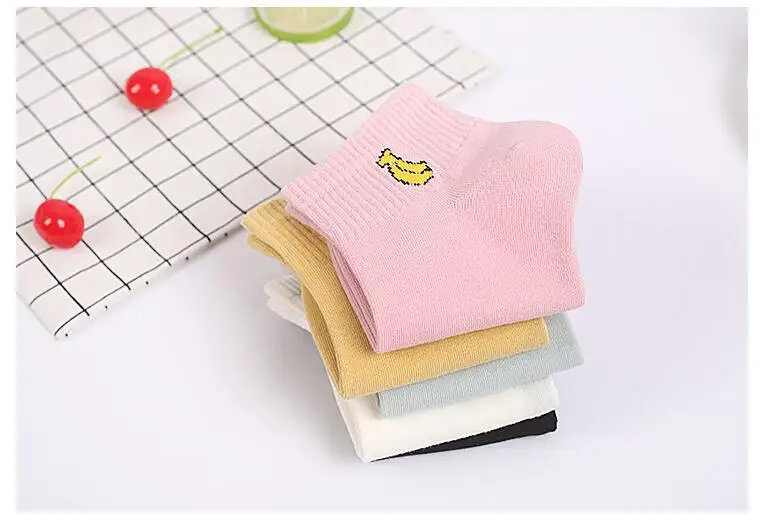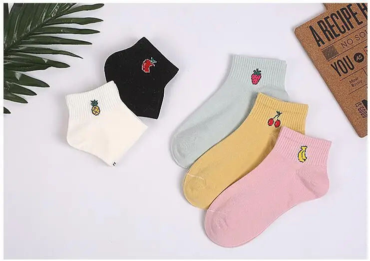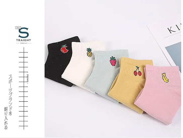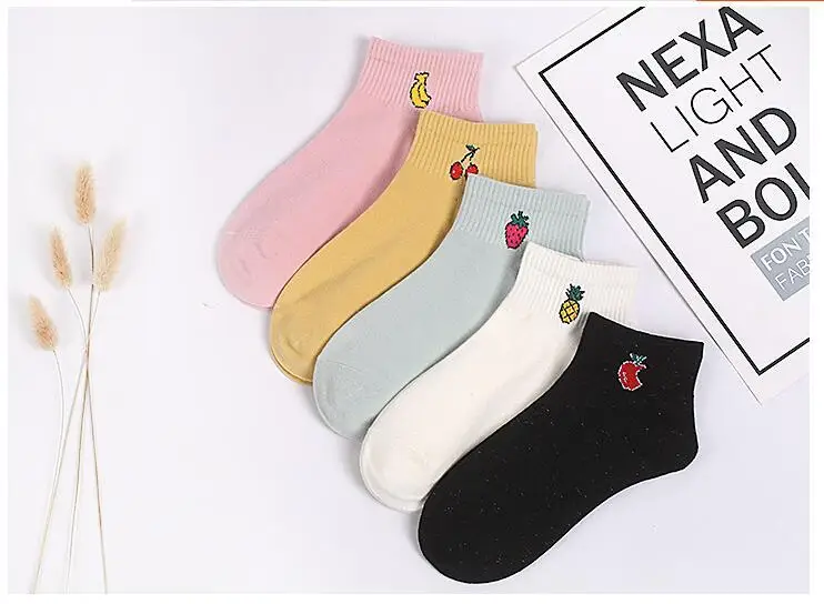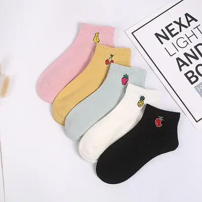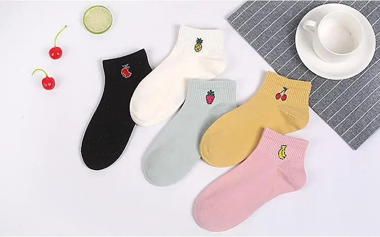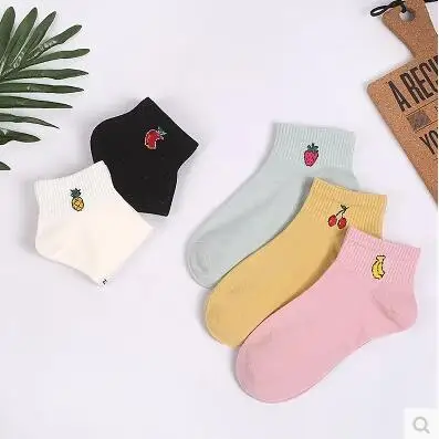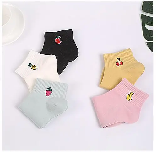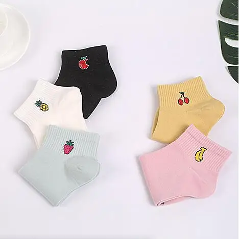 Новые милые Носки с рисунком фруктов, женские японские хлопковые носки короткие носочки по щиколотку с вышивкой, 5 пар в партии