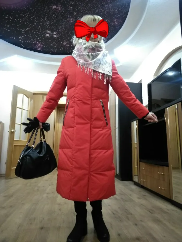 Пуховик заказала 23.11, в Сургут прибыл 18.12 Брала на параметры 85-65-95, на рост 162 см размер S. Подошло отлично. Ткань плотная, без блеска, цвет насыщенный, очень красивый алый. Застежки на мужскую сторону, но вообщем то не смущает. Капюшон отстегивается. Рекомендую к покупке!!!!! Спасибо продавцу!!!!!! Небольшой подарок - маска ( оч. актуально)))))
