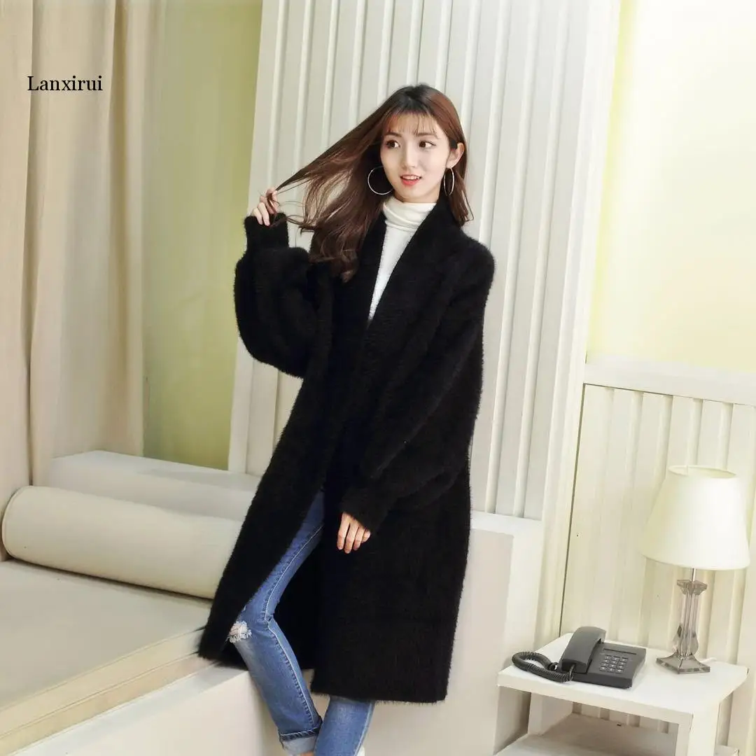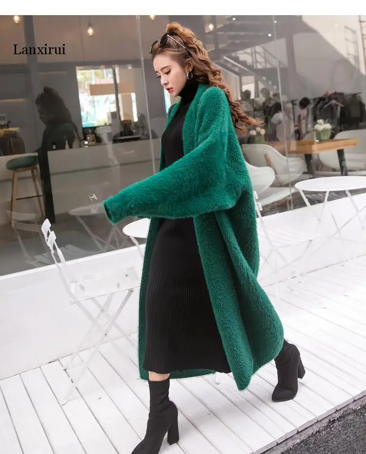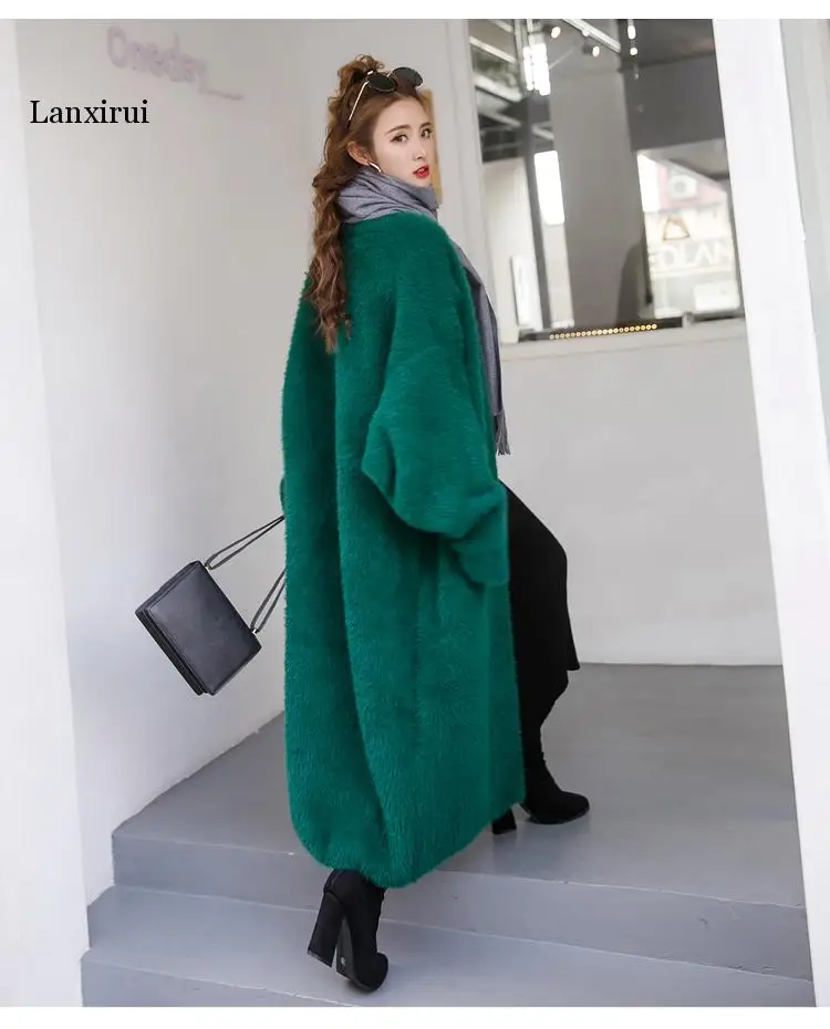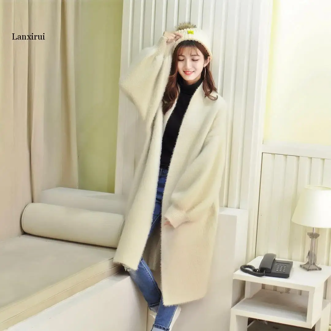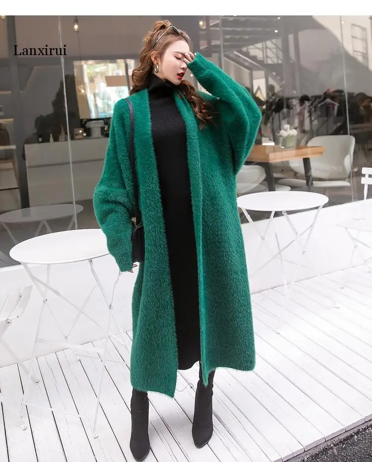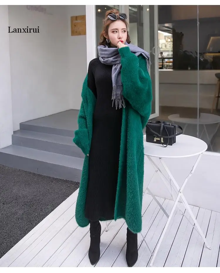 Кардиган женский вязаный, большого размера, с рукавом летучая мышь, из искусственной норки, однотонный