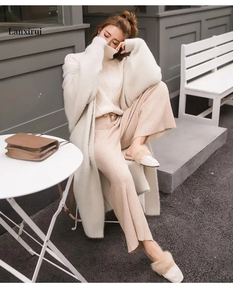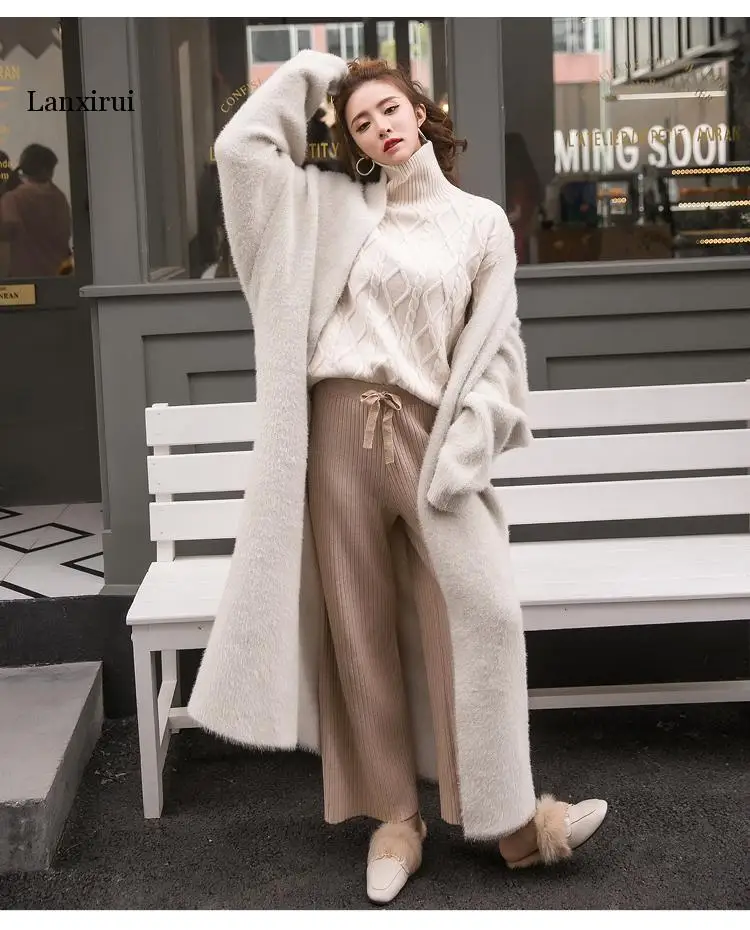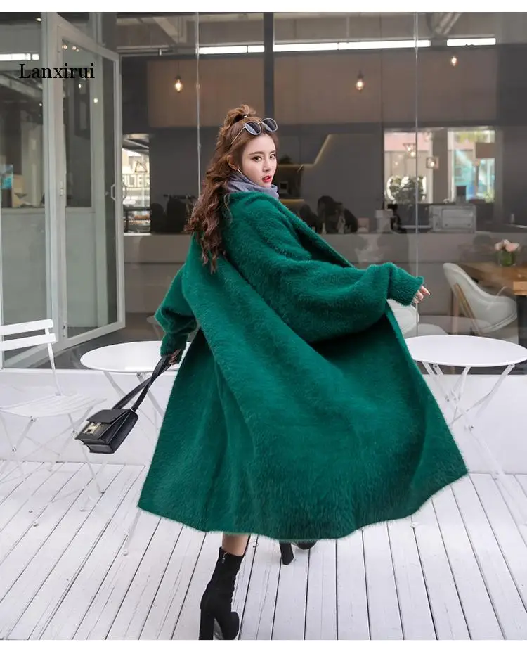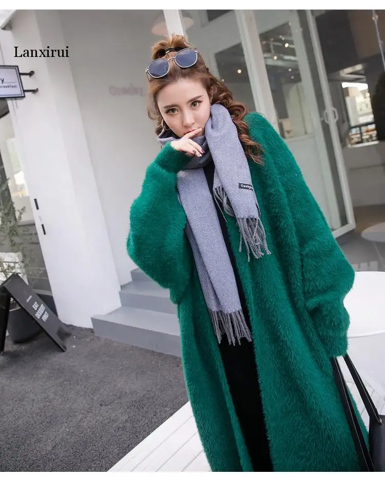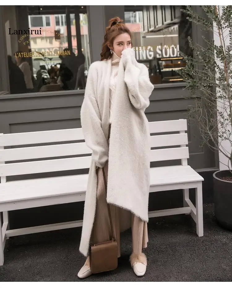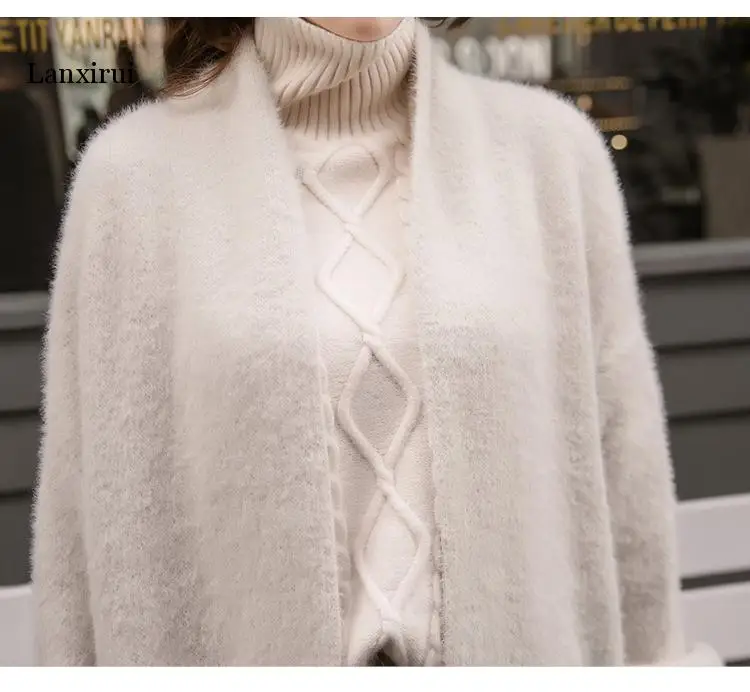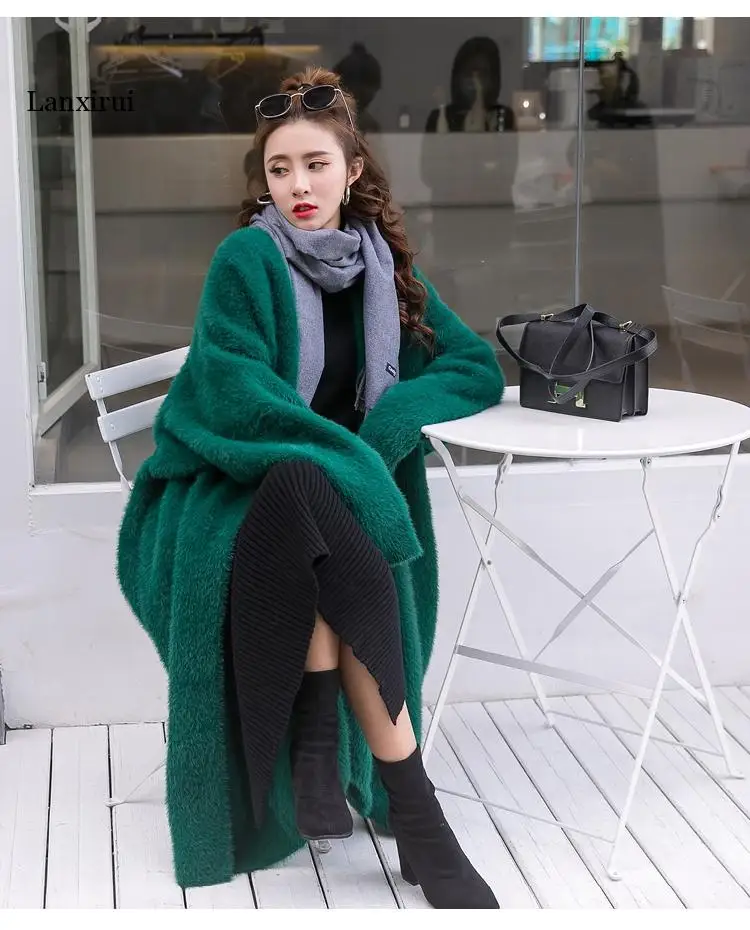 Кардиган женский вязаный, большого размера, с рукавом летучая мышь, из искусственной норки, однотонный