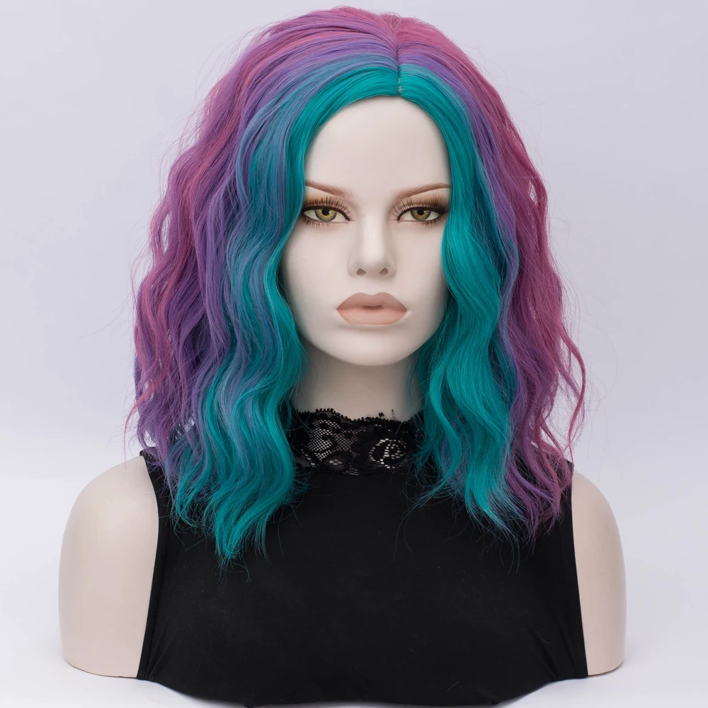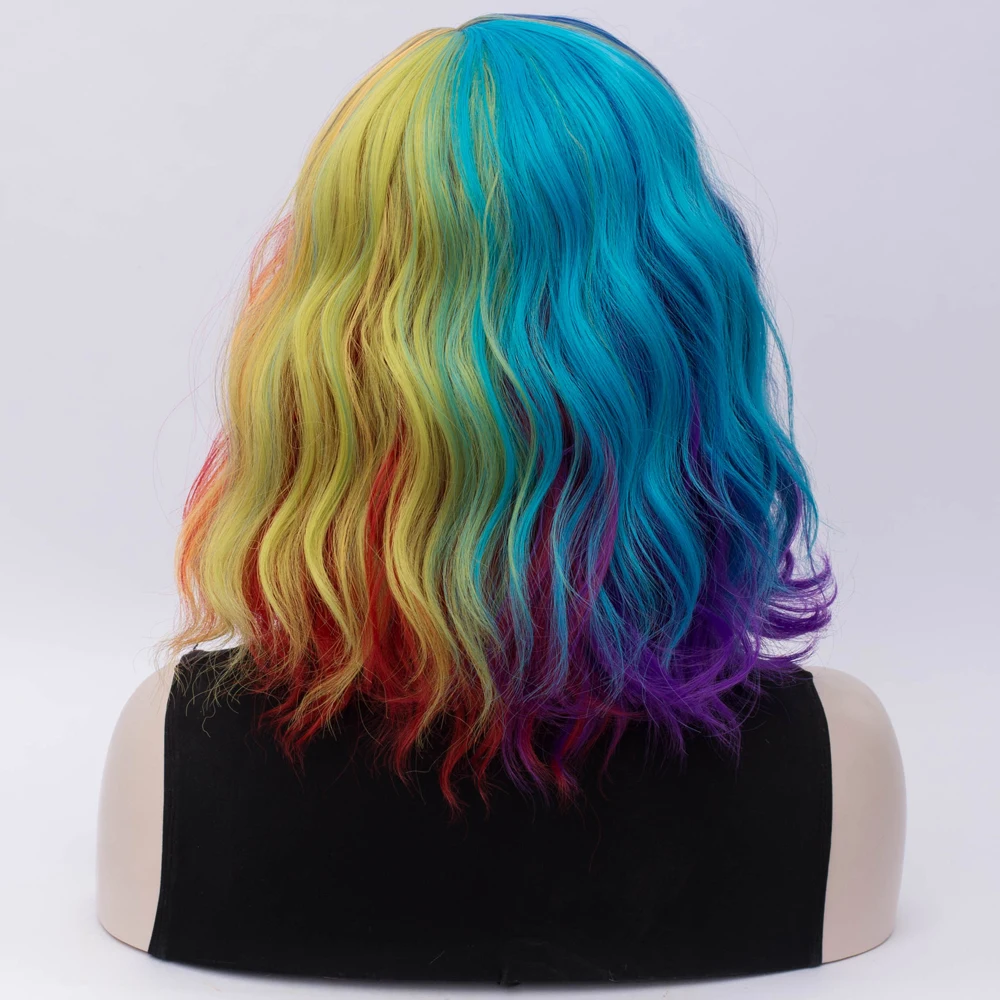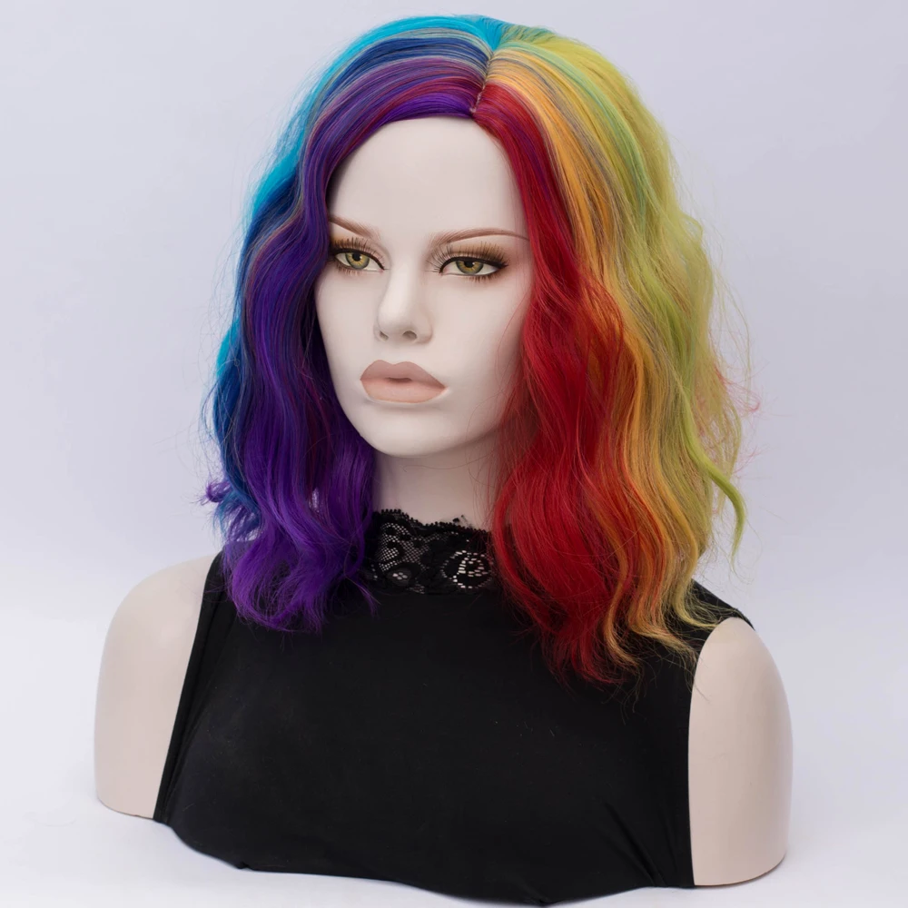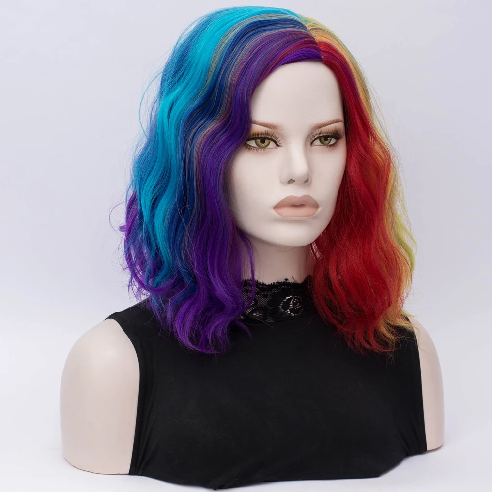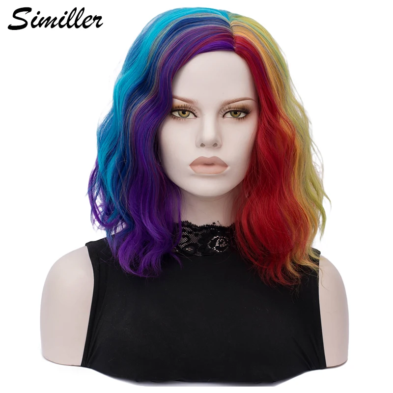 Similler женские радужные парики с эффектом омбре, синтетические волосы, вьющиеся короткие парики для косплея, аниме микс разноцветных, центральная часть