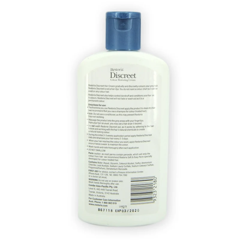 Как это работает? Серость вызвана потерей натурального пигмента в волосах. Restoria сдержанный противостоит эффекту пигментного голодания в коре волос. Restoria Discreet-это цветной кондиционер, который работает с природными химическими веществами для создания естественного цвета. Restoria сдержанный такжеПомогает контролировать перхоти.