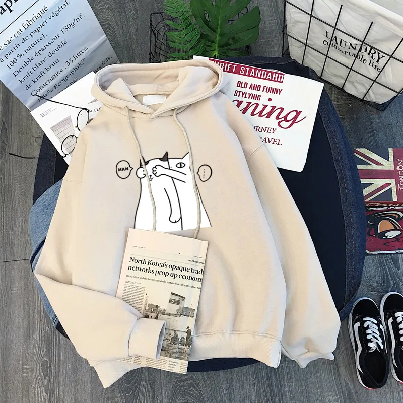 Зимняя женская толстовка с капюшоном, свитшот с принтом в стиле Харадзюку, парные котята, Женский пуловер с длинными рукавами для студентов, женские топы