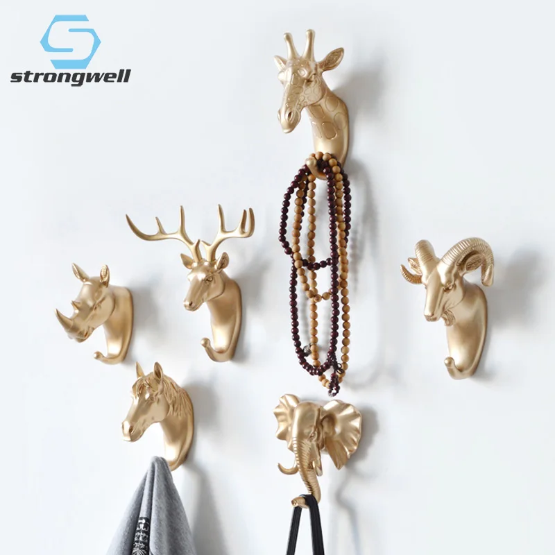 Крючки для подвешивания Strongwell, в скандинавском стиле, золотые, с изображением животных, крепкие бесшовные крючков, вешалки для ключей, Настенный декор, украшение для дома