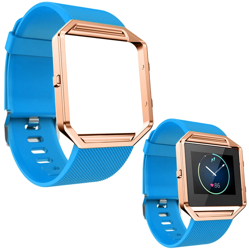 Силиконовый ремешок для фитнес-часов Fitbit Blaze, сменный ремешок с металлической рамкой цвета розового золота, чехол